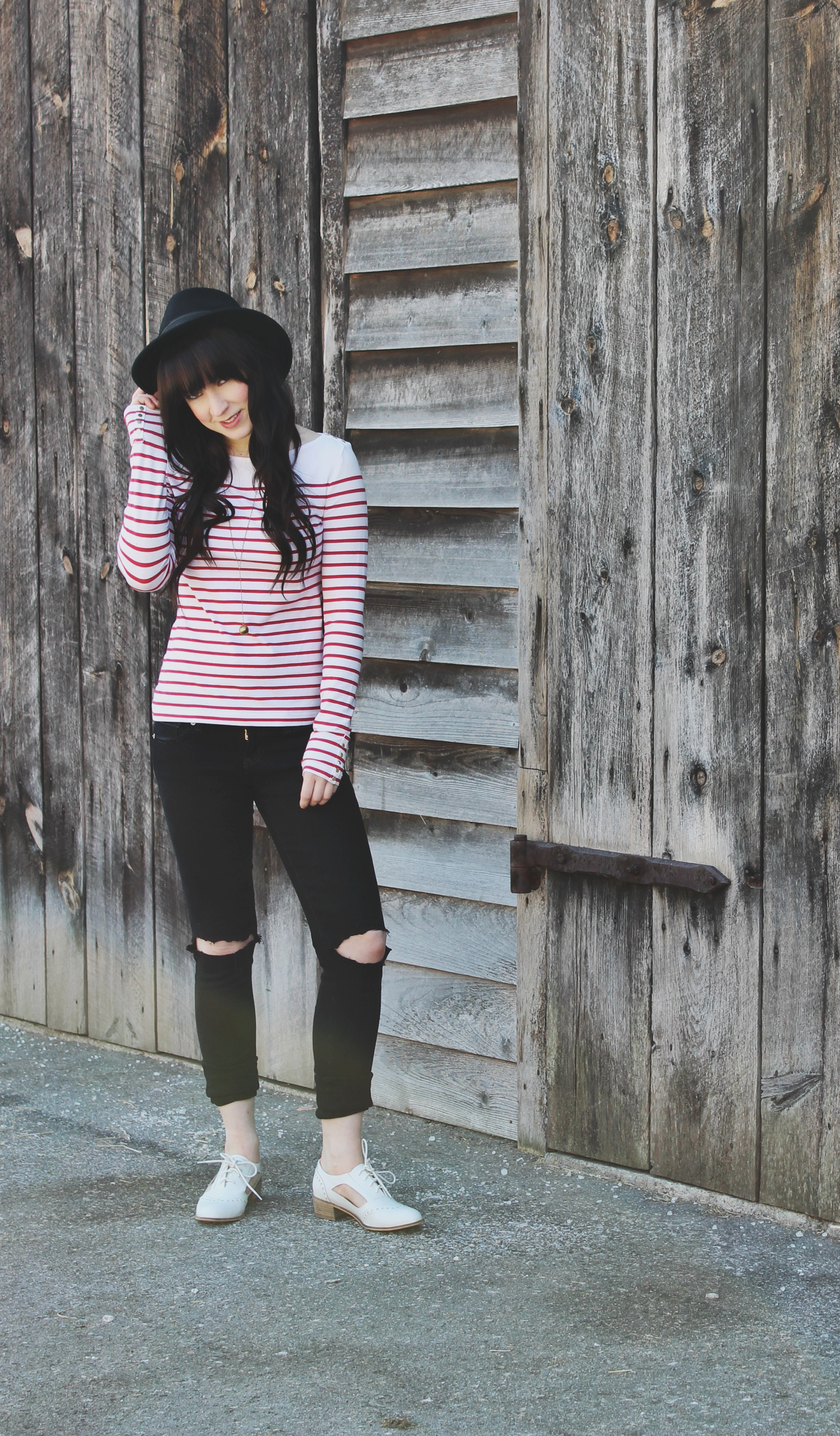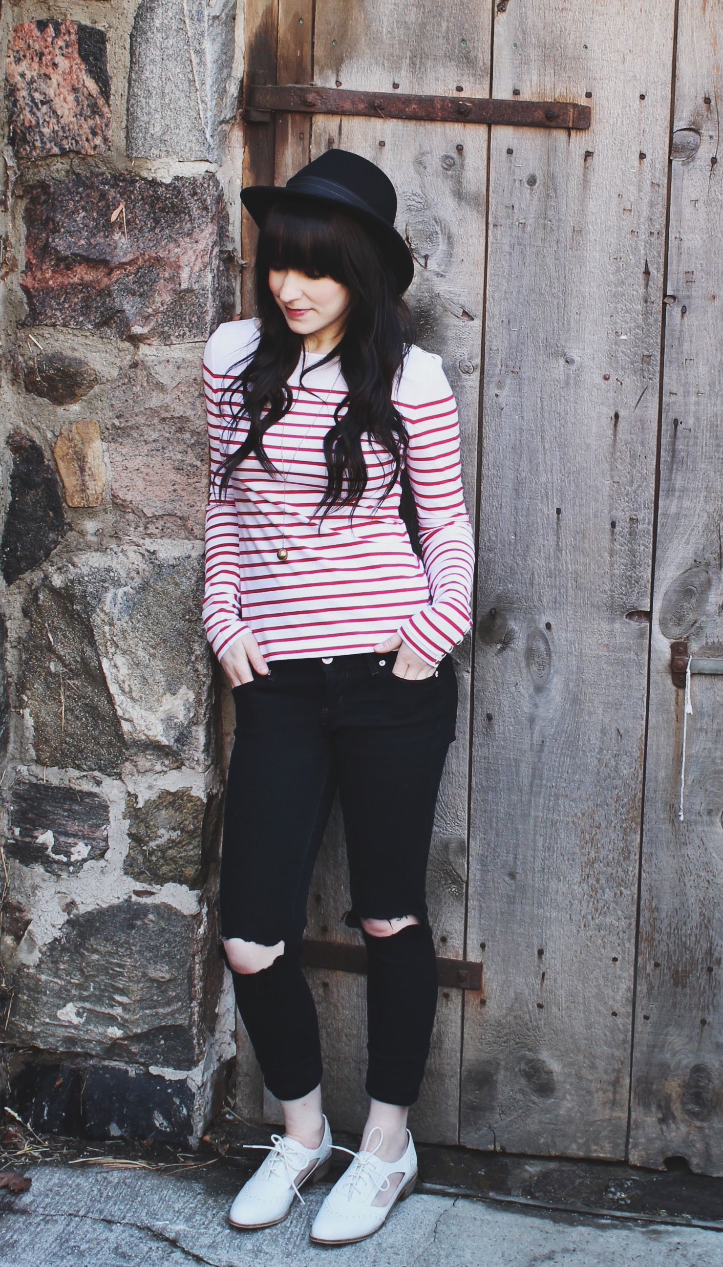 Outfit Details: Hat: Goorin Bros/Shirt: H&M/Jeans: Just USA/Shoes: Shelly’s London/Necklace: CoutuKitsch