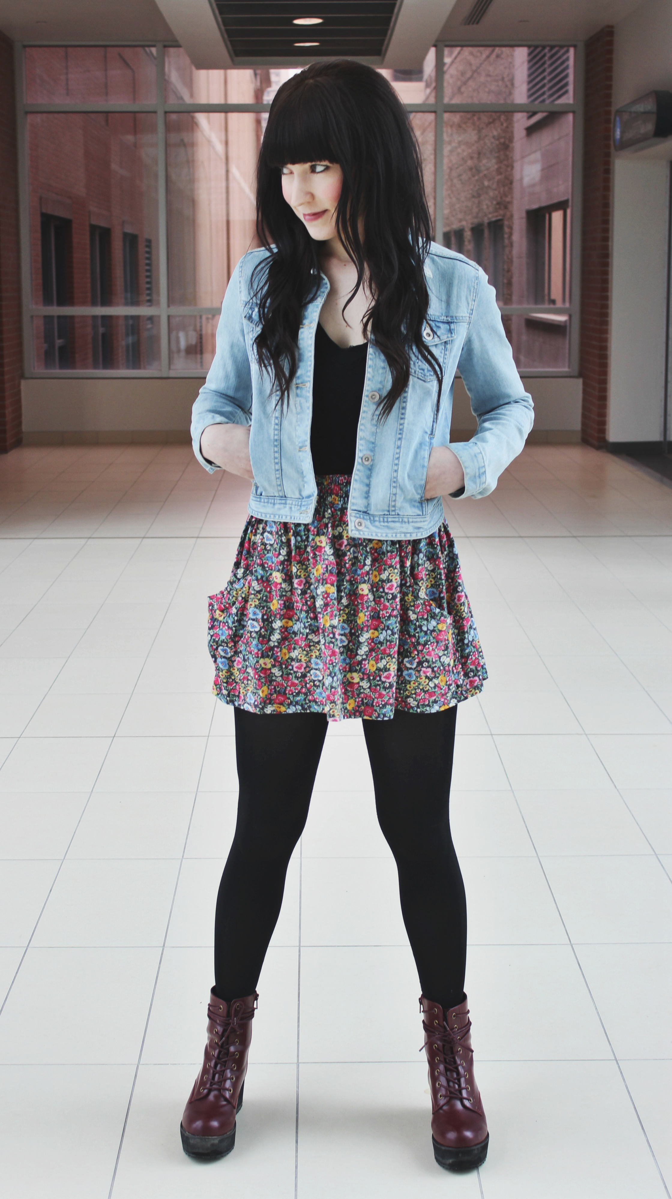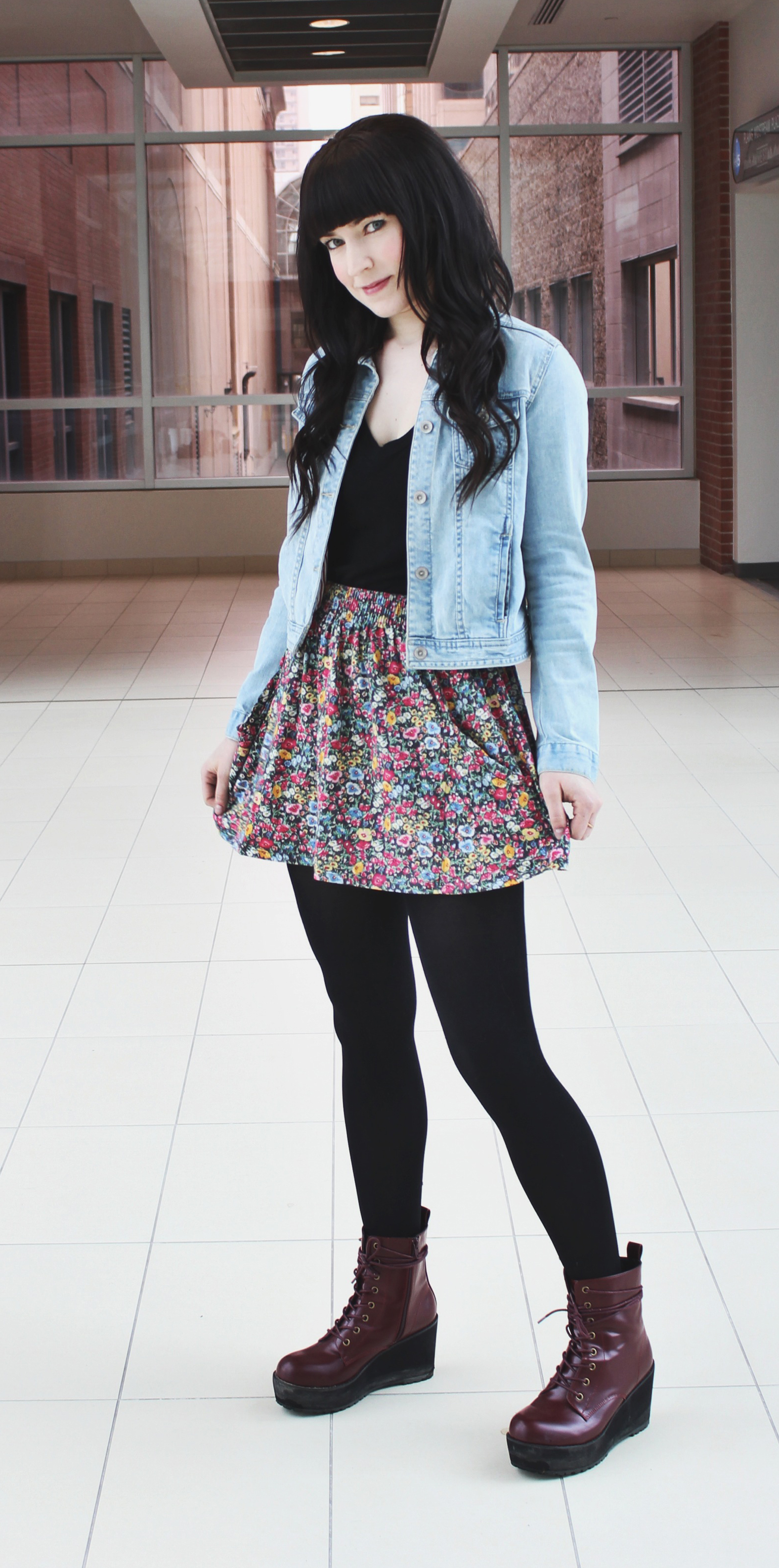 For the rest of this outfit I pulled this floral skirt out of bag of clothes I was planning on giving away. I dodged a bullet on that one. Sometimes I give away clothing items and then regret it later. Lucky for me it was still kicking around when I decided I wanted to wear it again.