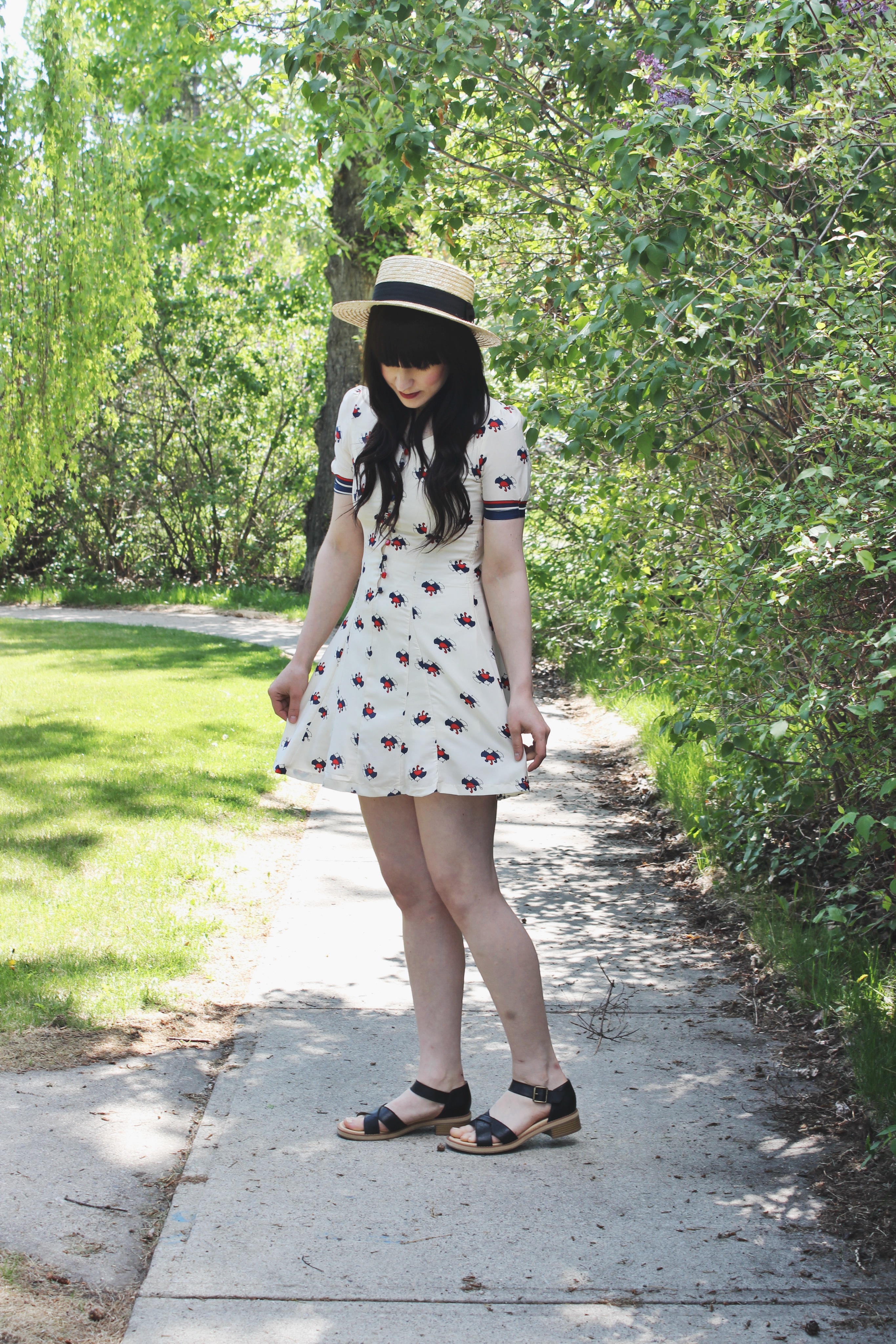 This outfit is absolutely adorable and the styling is perfection! The hat and sandals are perfect compliments to your super cute, summery dress – love it! 🙂
