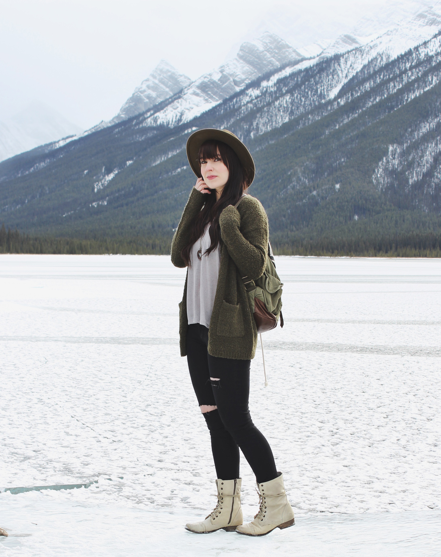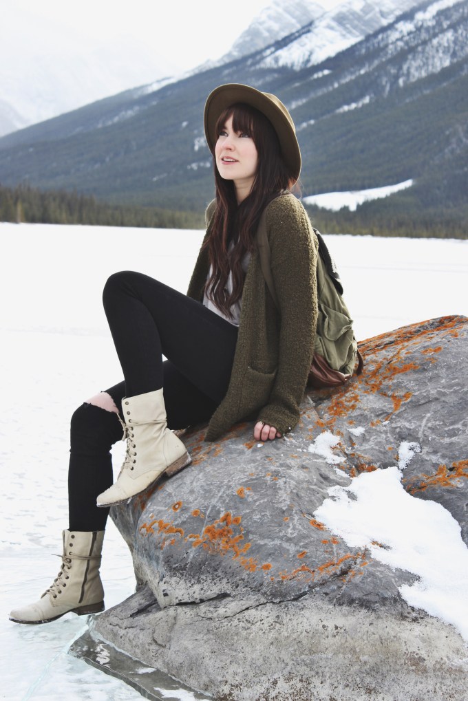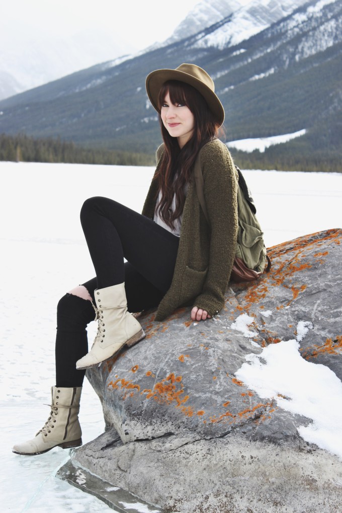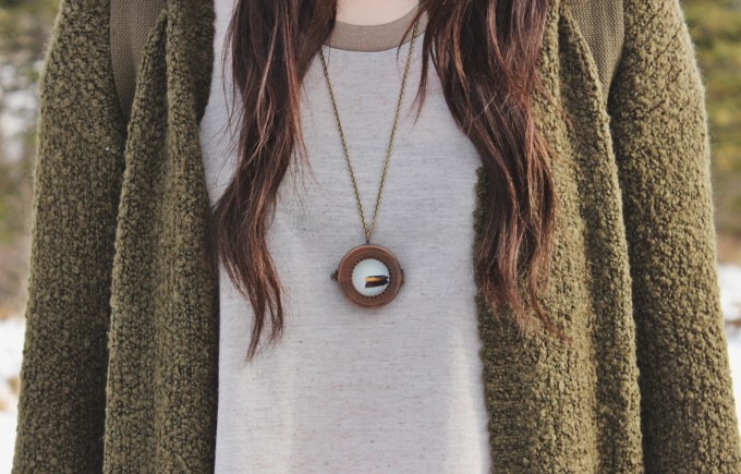 I talk a lot about my love for Cardigans and earth tones. This outfit is that in a nutshell, a cozy cardigan and very neutral and earthy colours. What can I say, I stick to what I like. If you find colours that work best with your skin tone and hair colour why not fill your wardrobe with them? I might have went a little crazy with green tones for this outfit but i’m really not that concerned. This necklace by Pika and Bear has a cool locket type feature. Check out the Hike365 blog for an upcoming giveaway of this necklace!