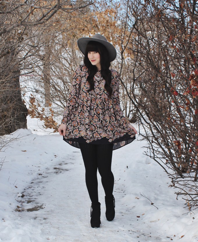 I have always been a sucker for a cute dress with an awesome pattern. This dress from Sheinside.com is no exception. I fell in love with the shape and print of the dress instantly and knew that it would fit perfectly into my wardrobe. Because the dress really stands out, I didn’t want to add too much colour to the rest of the outfit. I wore one of my favourite Goorin Bros hats and my Steve Madden booties that I find add a little something extra to everything I wear them with.