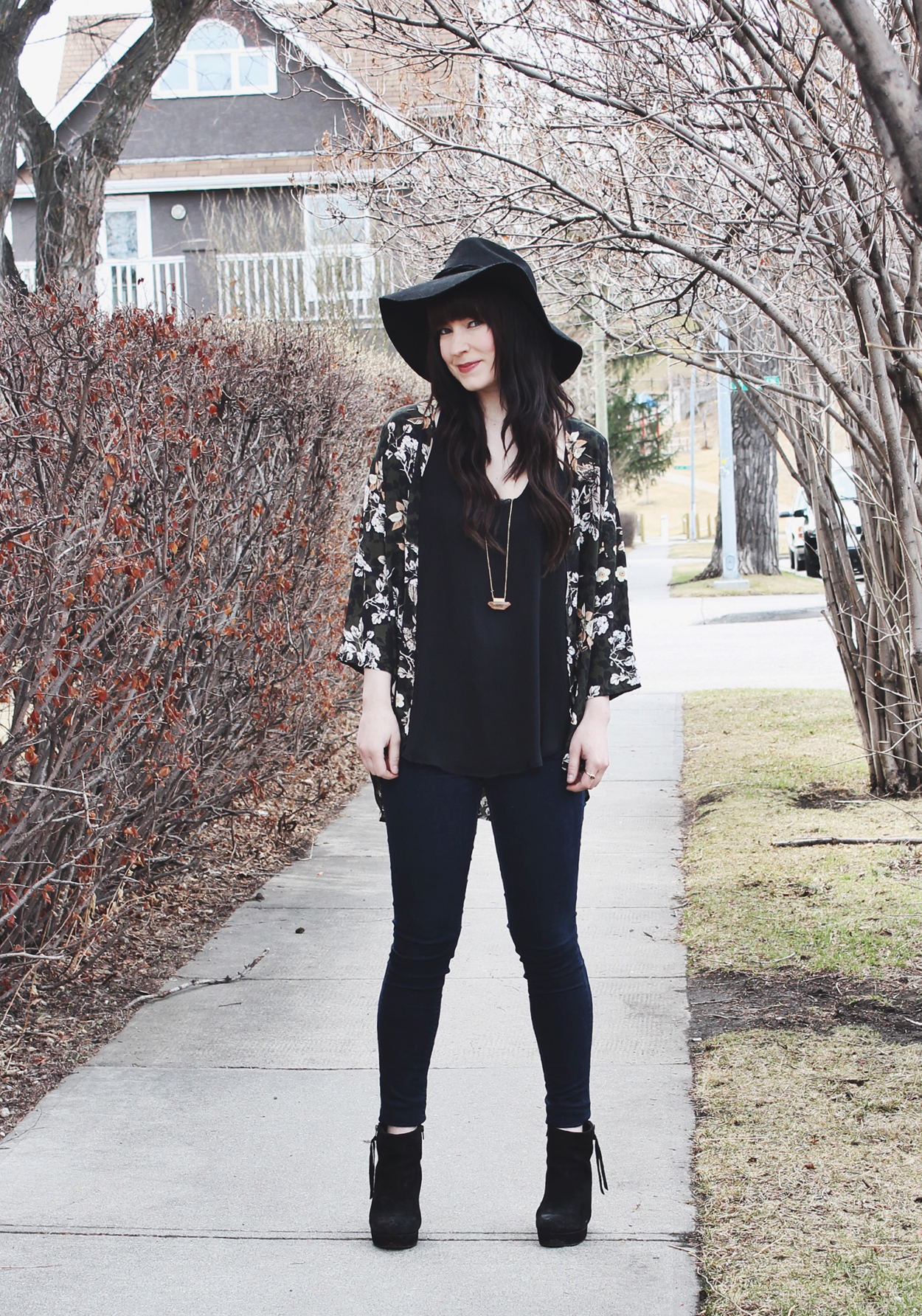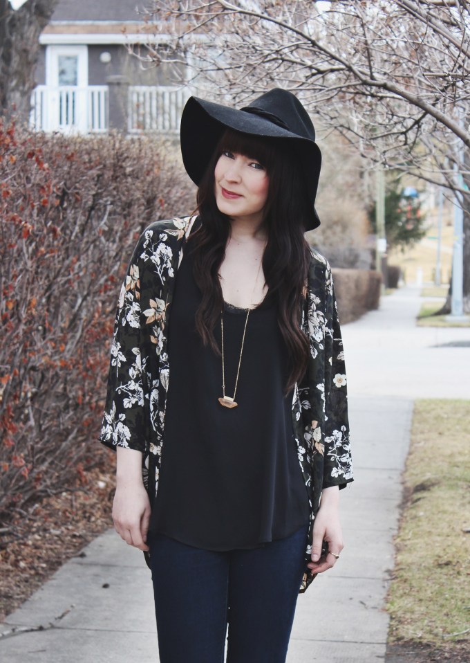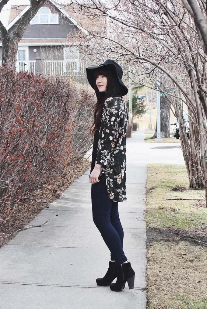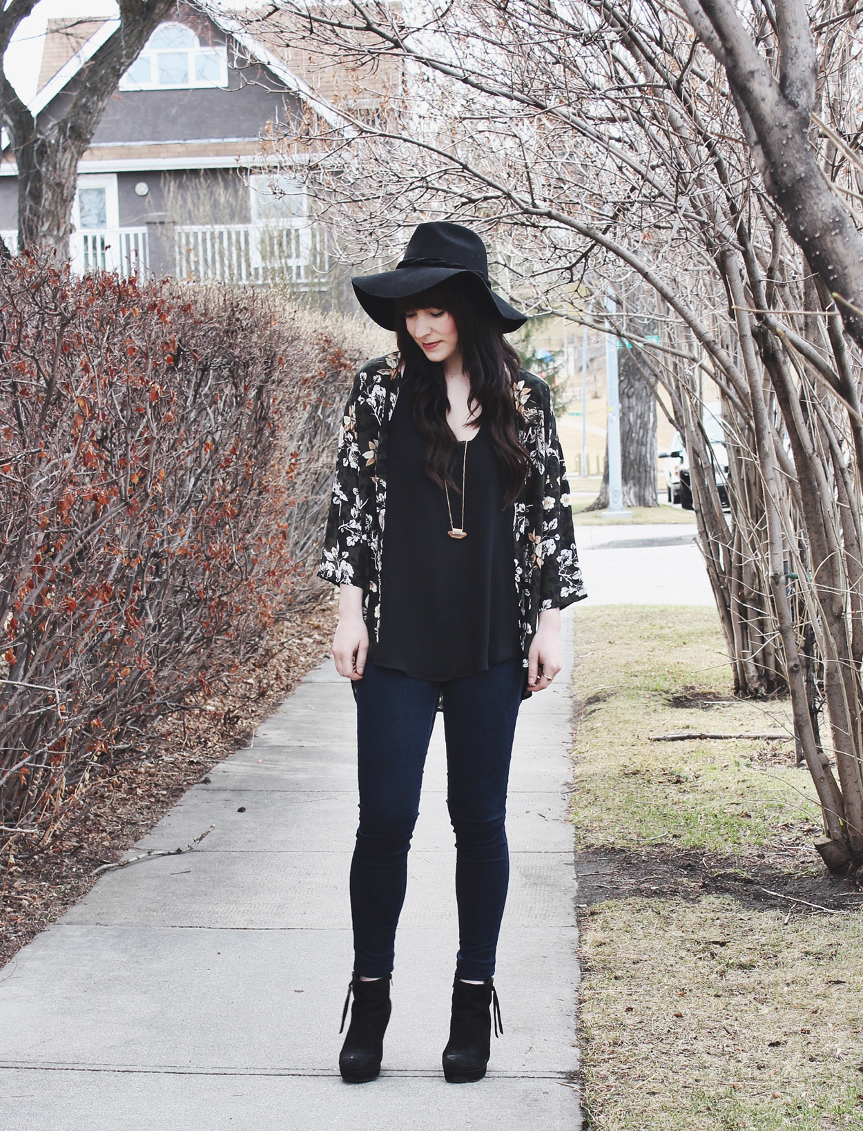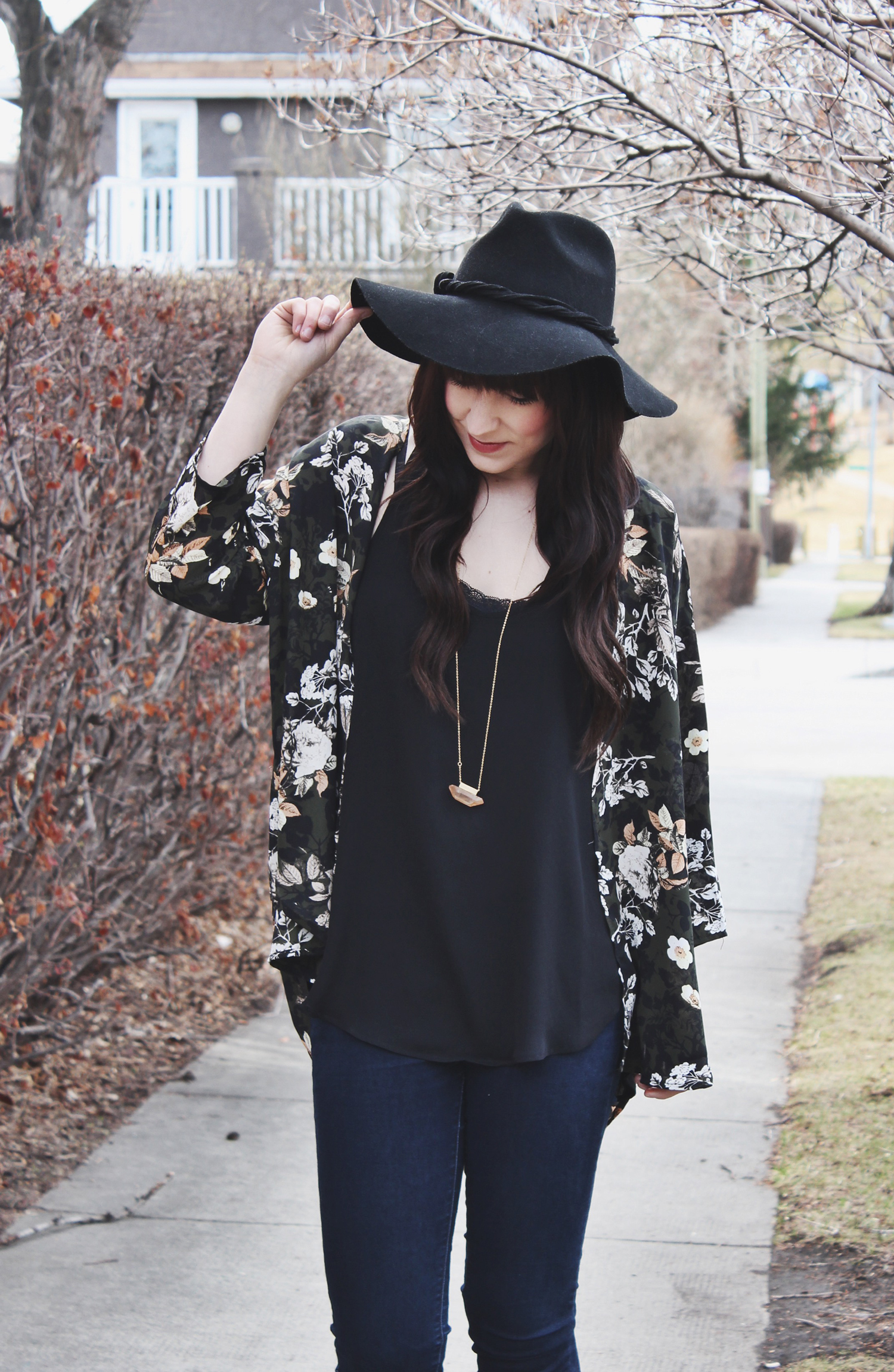 Now that it’s starting to really feel like spring here in Calgary, I can actually wear lighter pieces comfortably and sometimes even without a jacket over top. This floral Kimono is one of those pieces. I love floral patterns and spring and summer seem like the most fitting seasons to wear them.