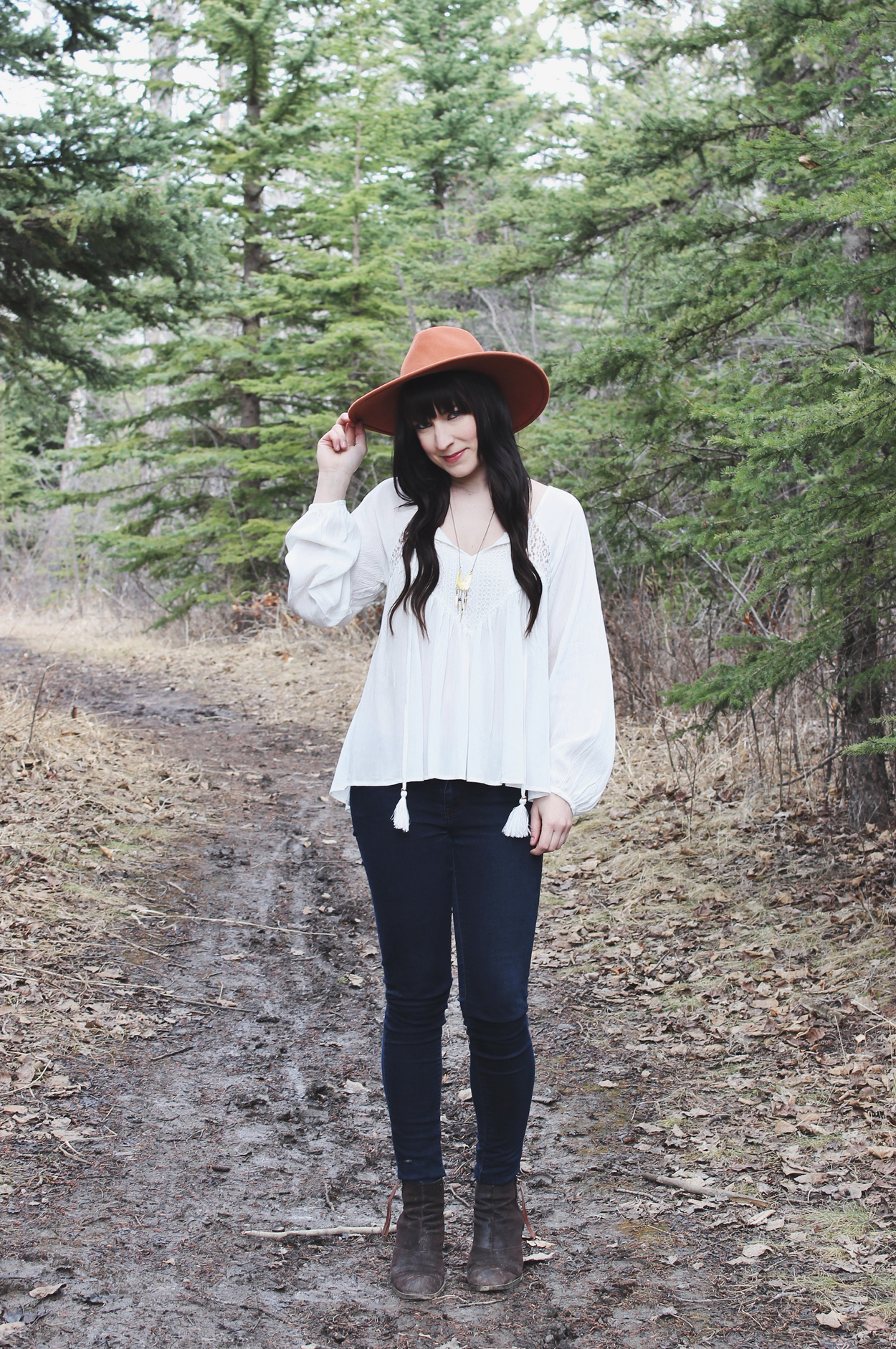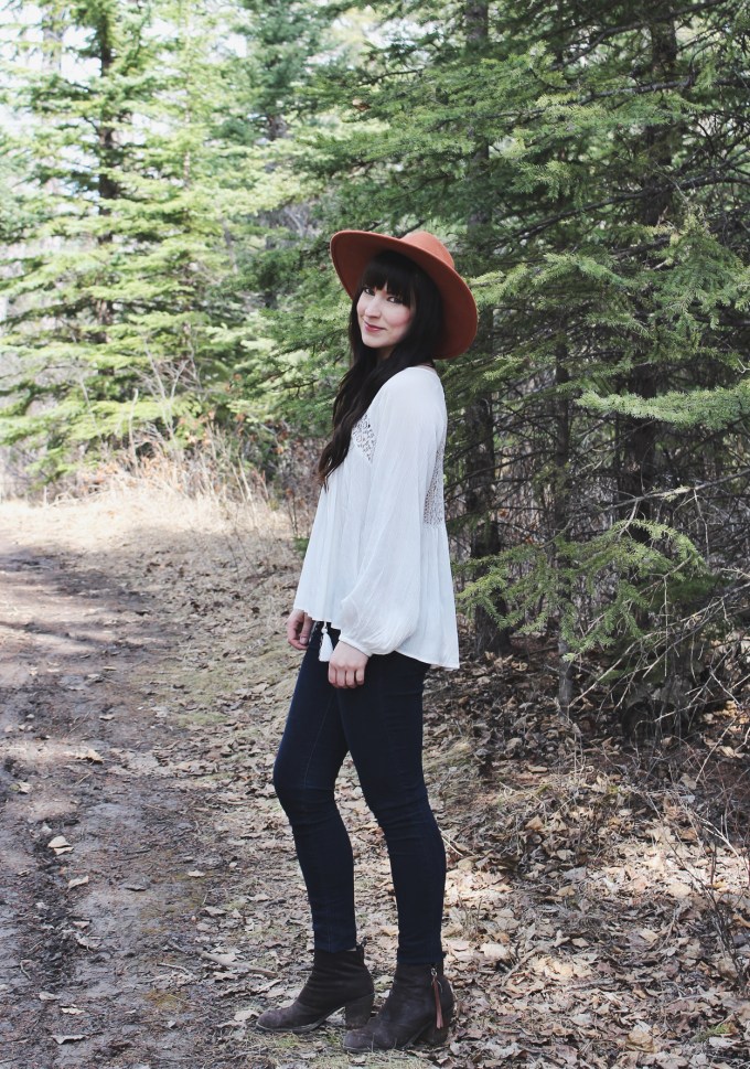 Outfit Details: Hat: Free People / Top: Double Zero / Boots: Dolce Vita (Old) Necklace: C/O Kokoro Kara