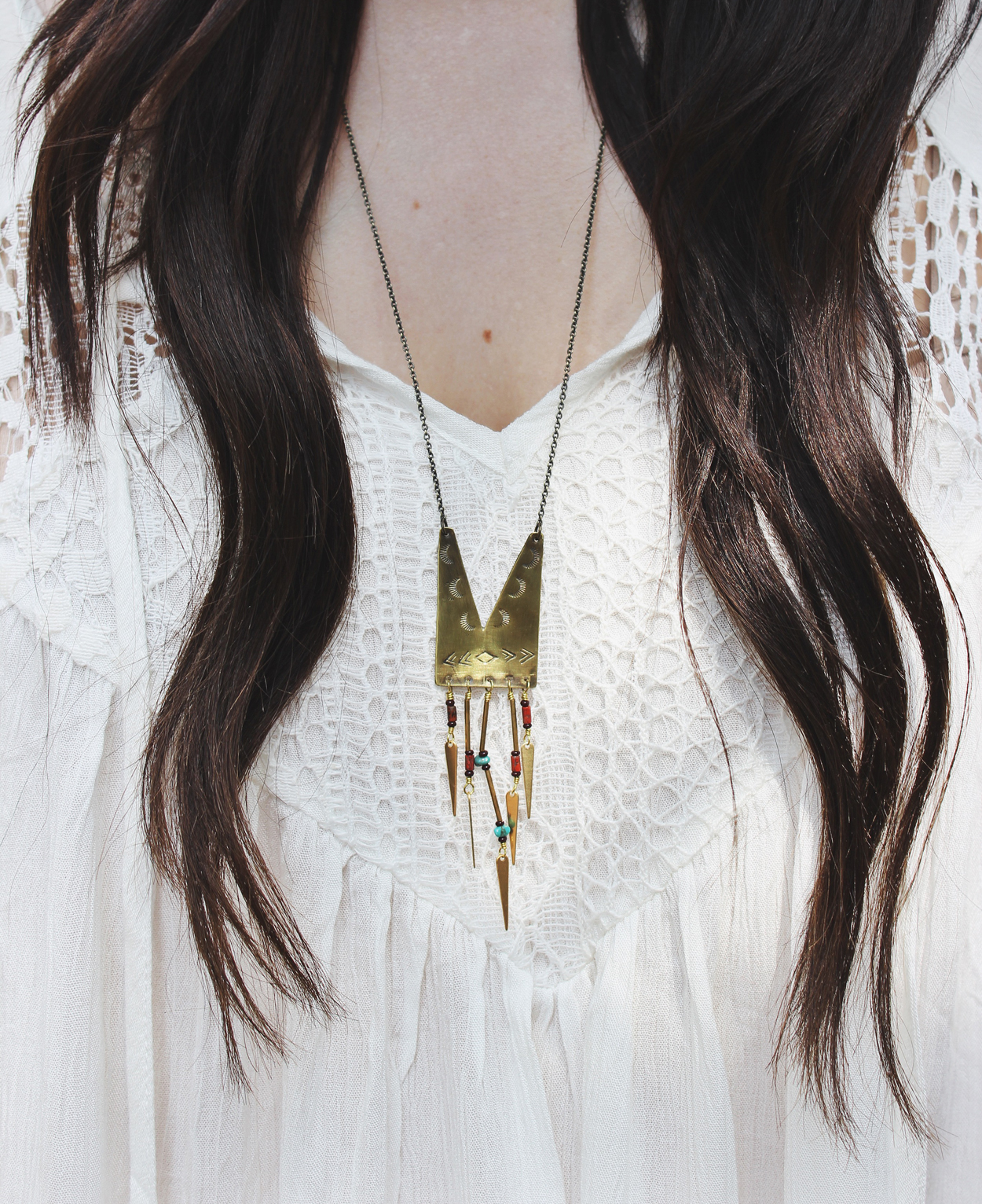 Two of my favourite styles for spring are floaty tops and wide brim hats. This outfit contains both of those styles. Although I will wear a wide brim hat no matter what the season, spring seems the most fitting.  I love this hat for its shape and colour. It doesn’t match perfectly with everything but it does add an awesome pop of colour to a plain outfit. I thought this necklace by Kokoro Kara was the perfect addition to the outfit. It has such  pretty details to it and I love the way it stands out on a white shirt!