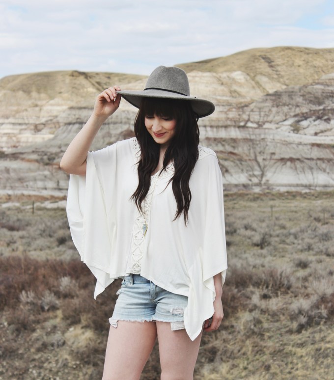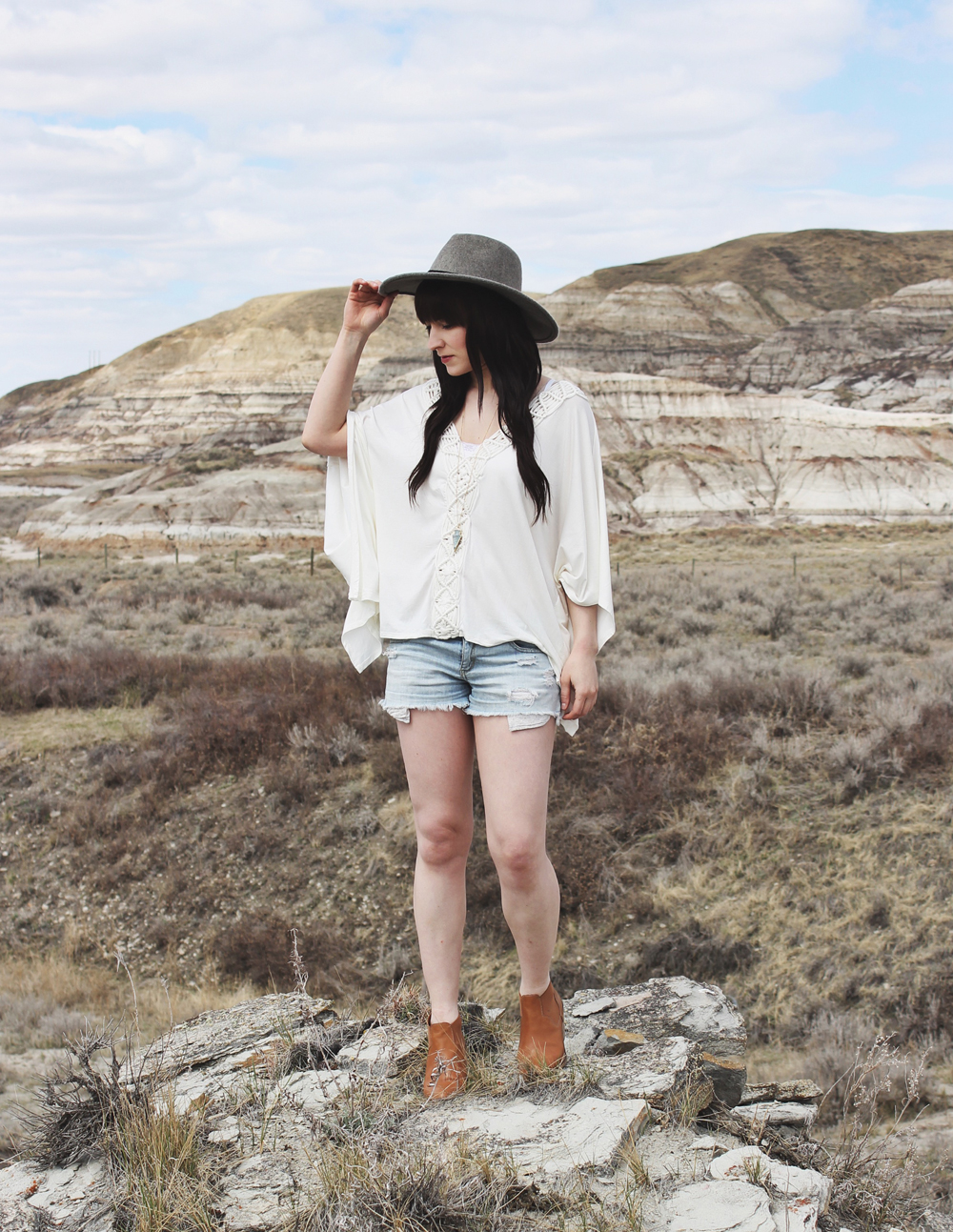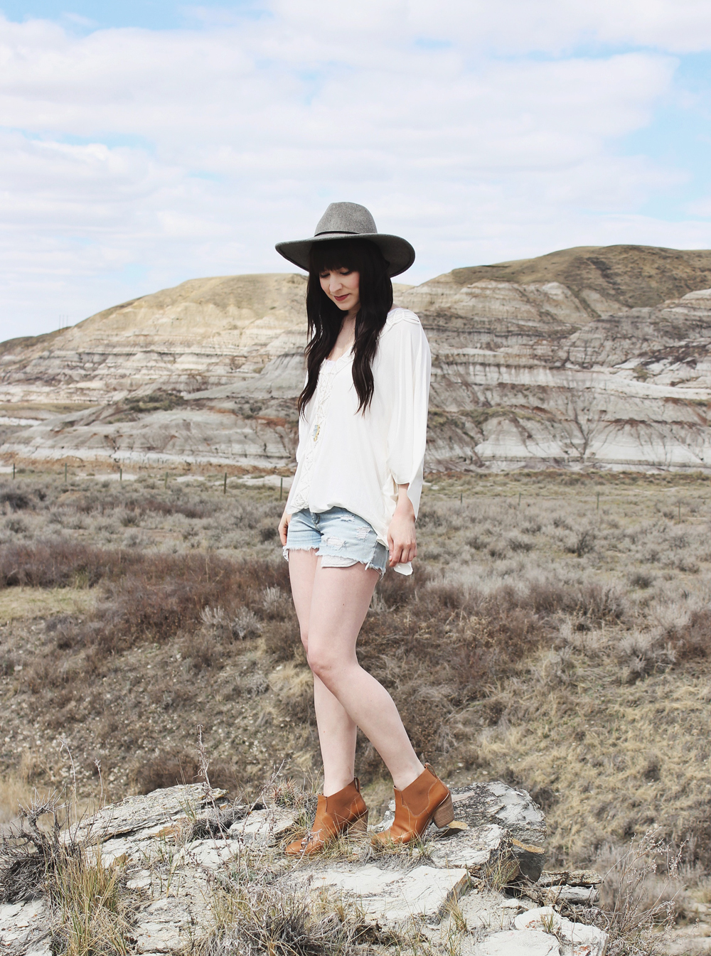 Outfit Details: Hat: Goorin / Top: C/O Lovestitch / Necklace: C/O Shesso / Boots: Aldo / Shorts: Roxy