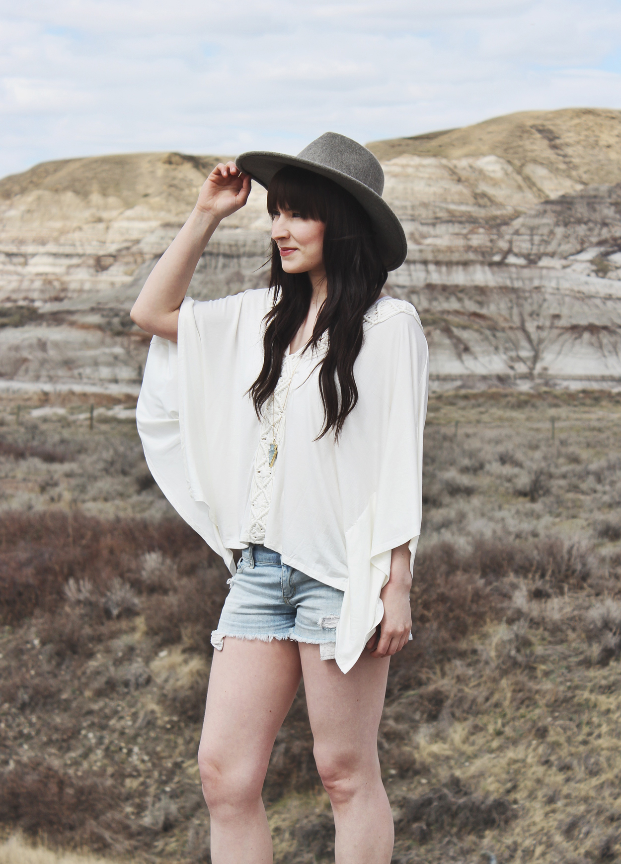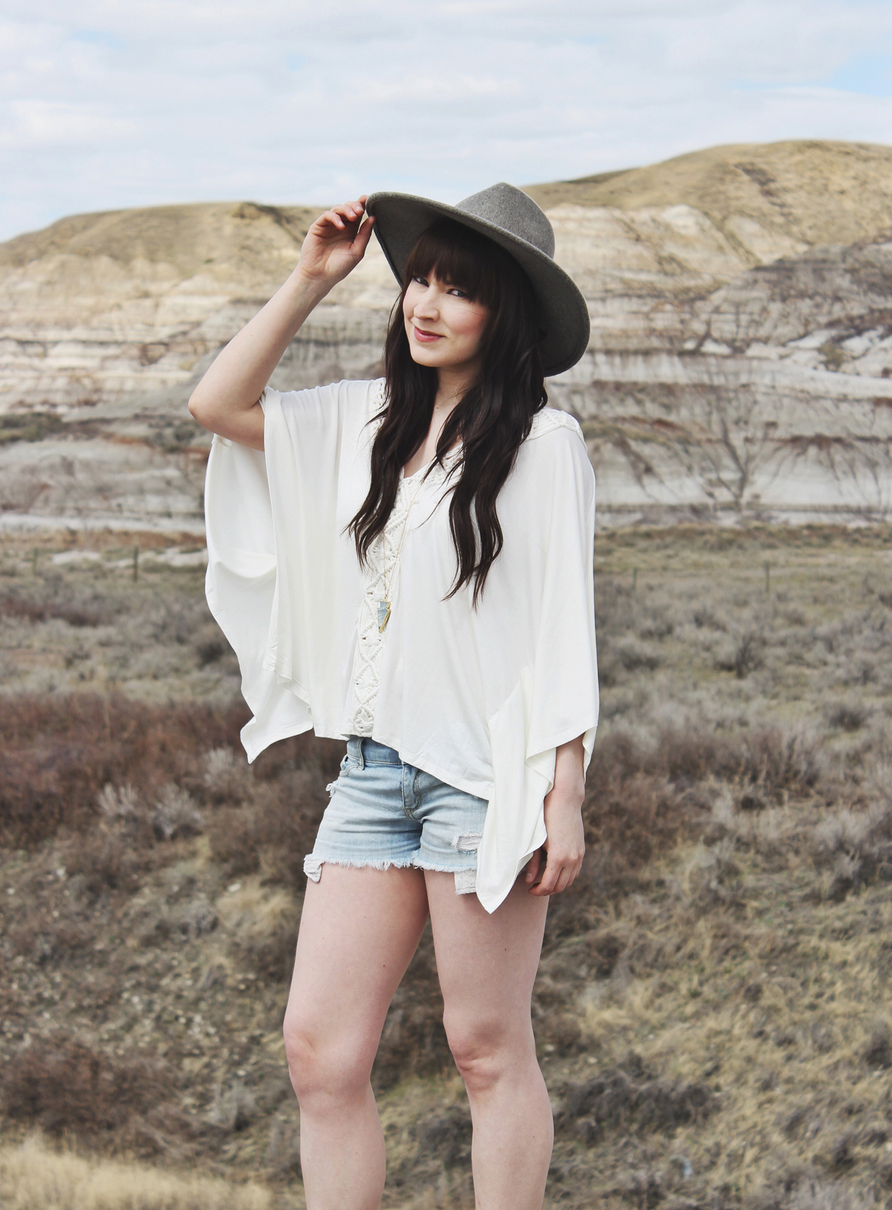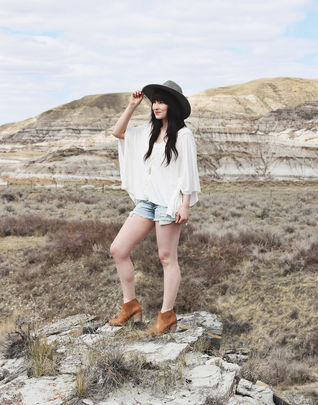 Outfit Details: Hat: Goorin / Top: C/O Lovestitch / Necklace: C/O Shesso / Boots: Aldo / Shorts: Roxy