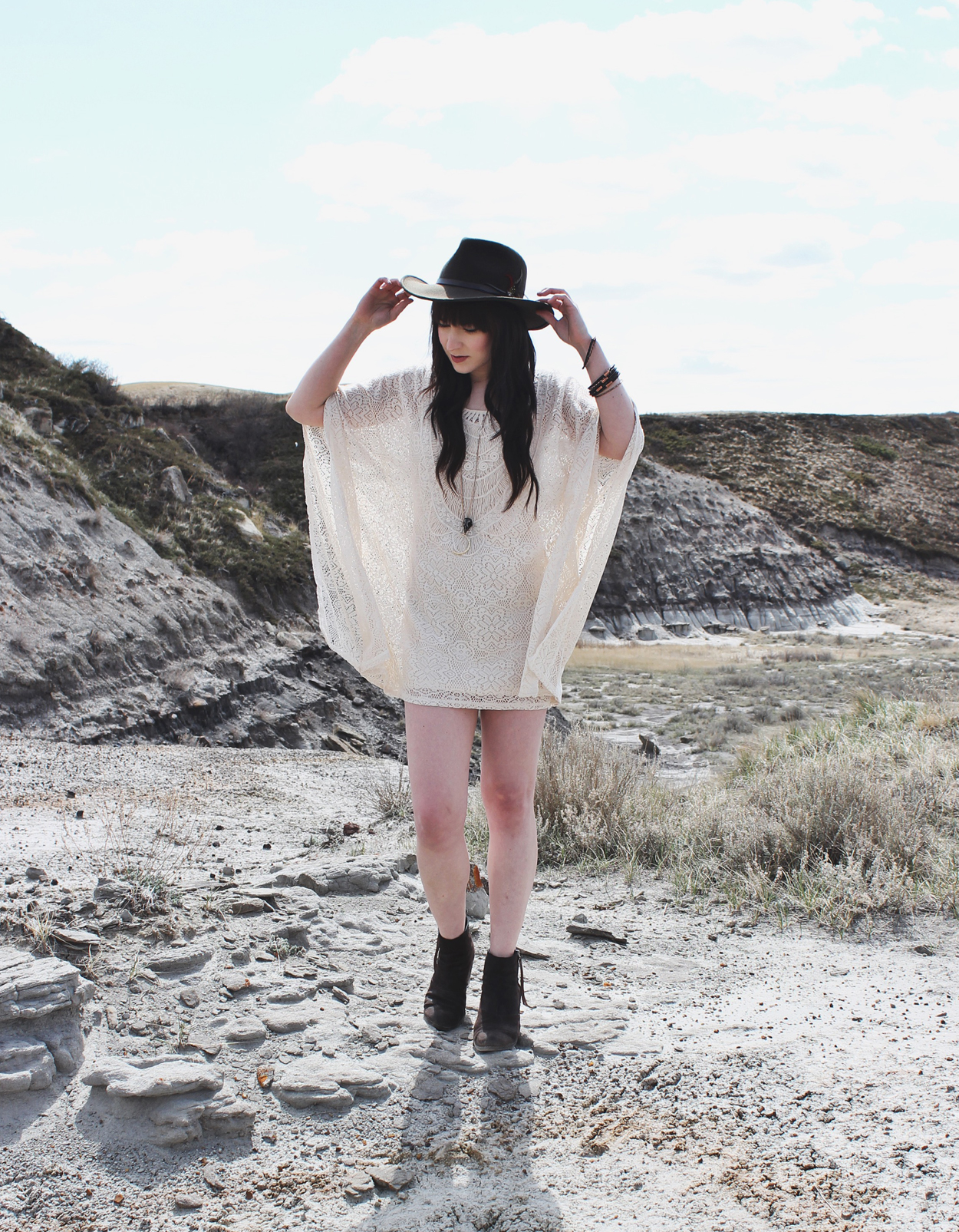 The rest of this look consists of two of my favourite necklaces. One is my crescent moon necklace by Shesso and the other one is my northern cardinal skull by Black Sparrow Jewelry. I added my favourite western style hat and there you have it, my favourite spring outfit.