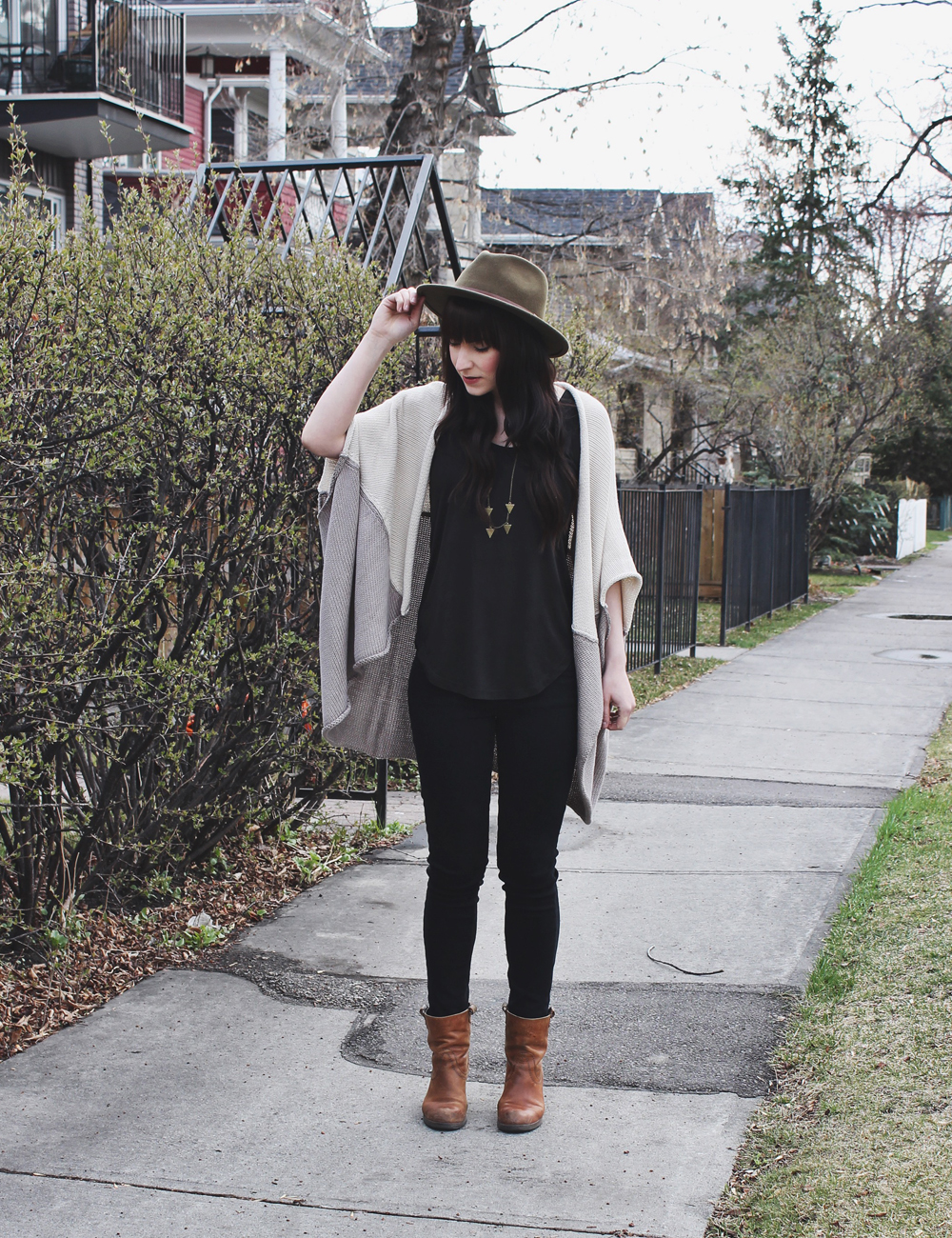 This Lovestitch cardigan has everything I could possibly ask for in a cardigan. It’s got neutral colours, which I love and it’s a very interesting style, it’s different than most cardigans you see out there. It also hangs really nicely and is a bit oversized without being unflattering. I’ve found that Lovestitch makes a lot of clothing that fits me very well and the sizing is pretty consistent for the most part. It’s also really well made and not very expensive, I love that in clothing!