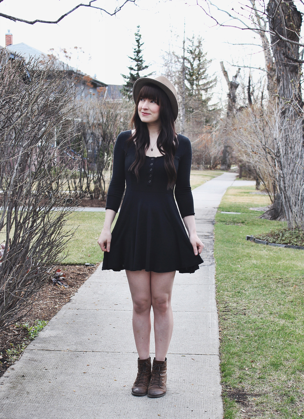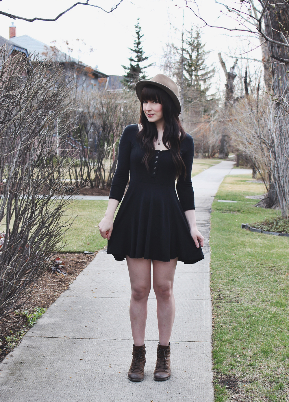 Outfit Details: Dress: BDG (Urban Outfitters) / Hat: Goorin Bros / Boots: Hibou (Litttle Burgundy)