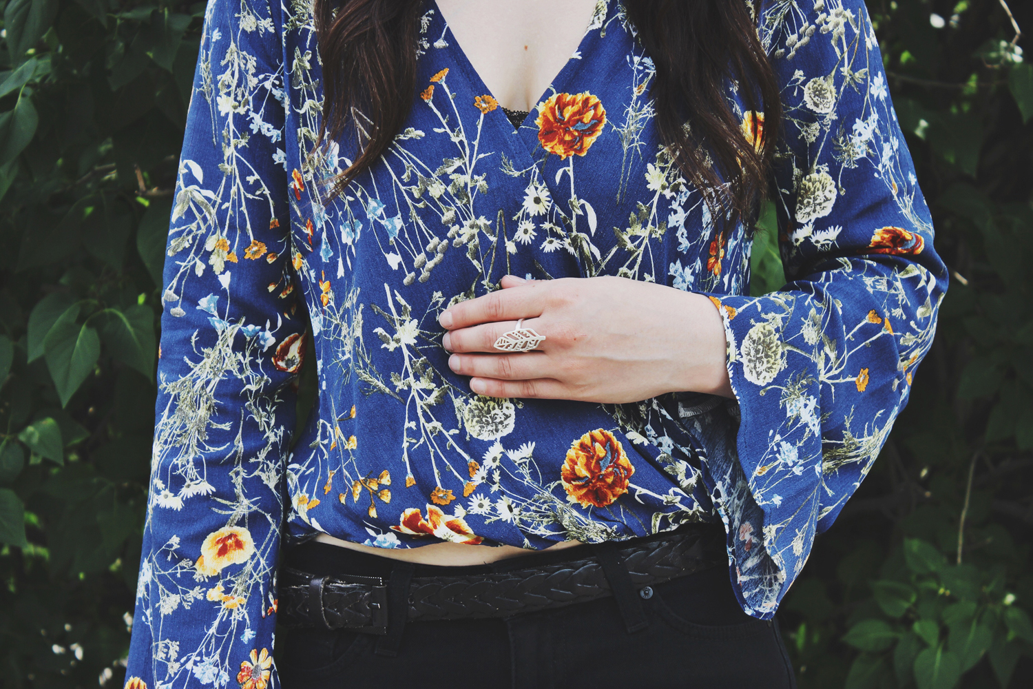 I wore very minimal jewelry with this look, mostly because the top has so much detail that I didn’t need to add a necklace. I did however wear my new Foxy Originals ring. It’s one of my favourite new accessories and a perfect addition to this look!
