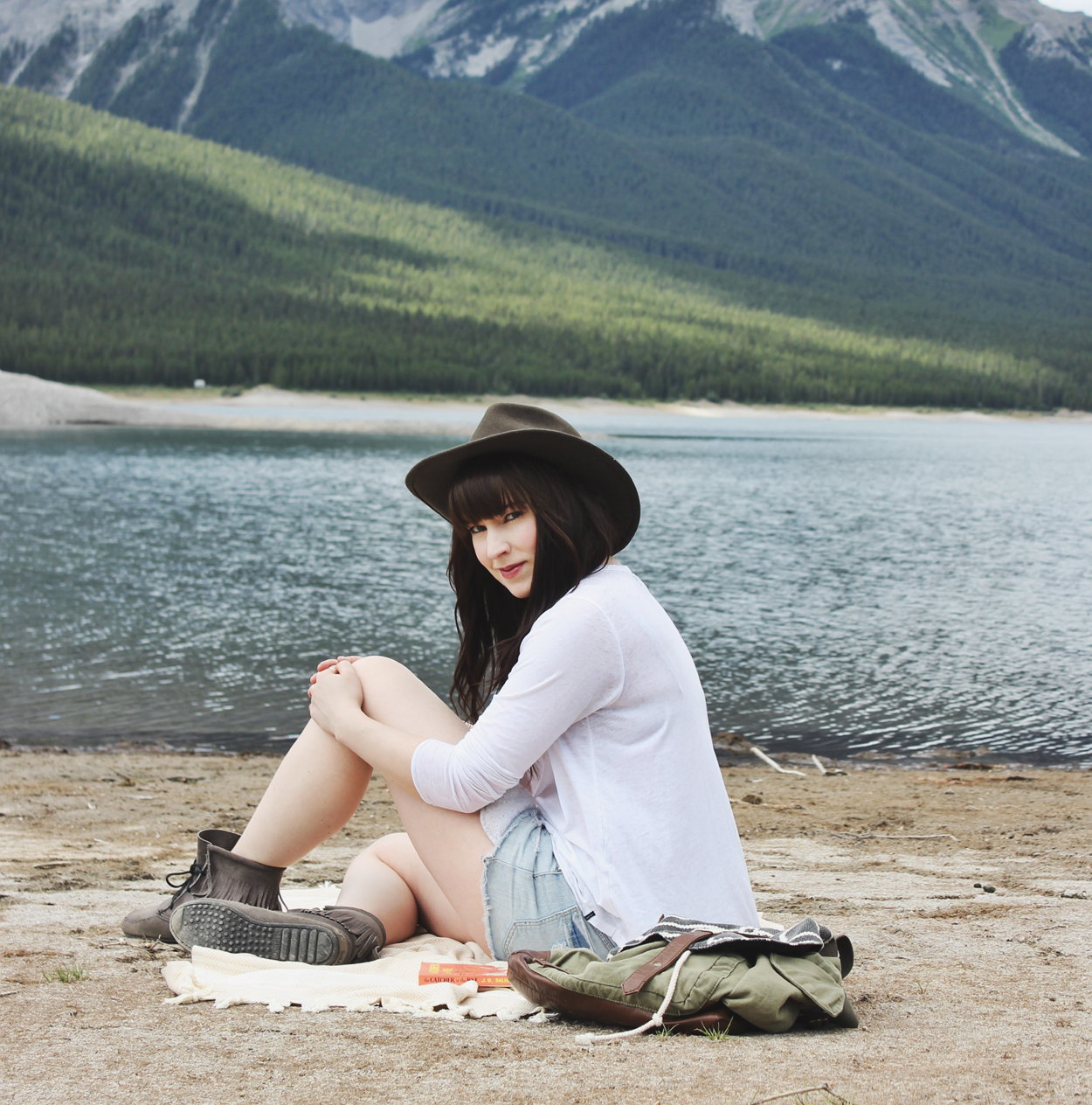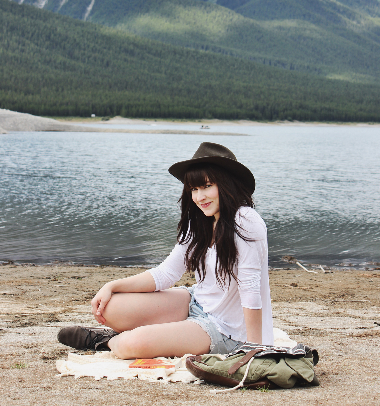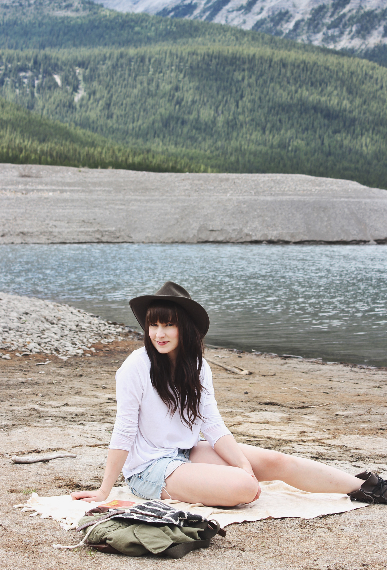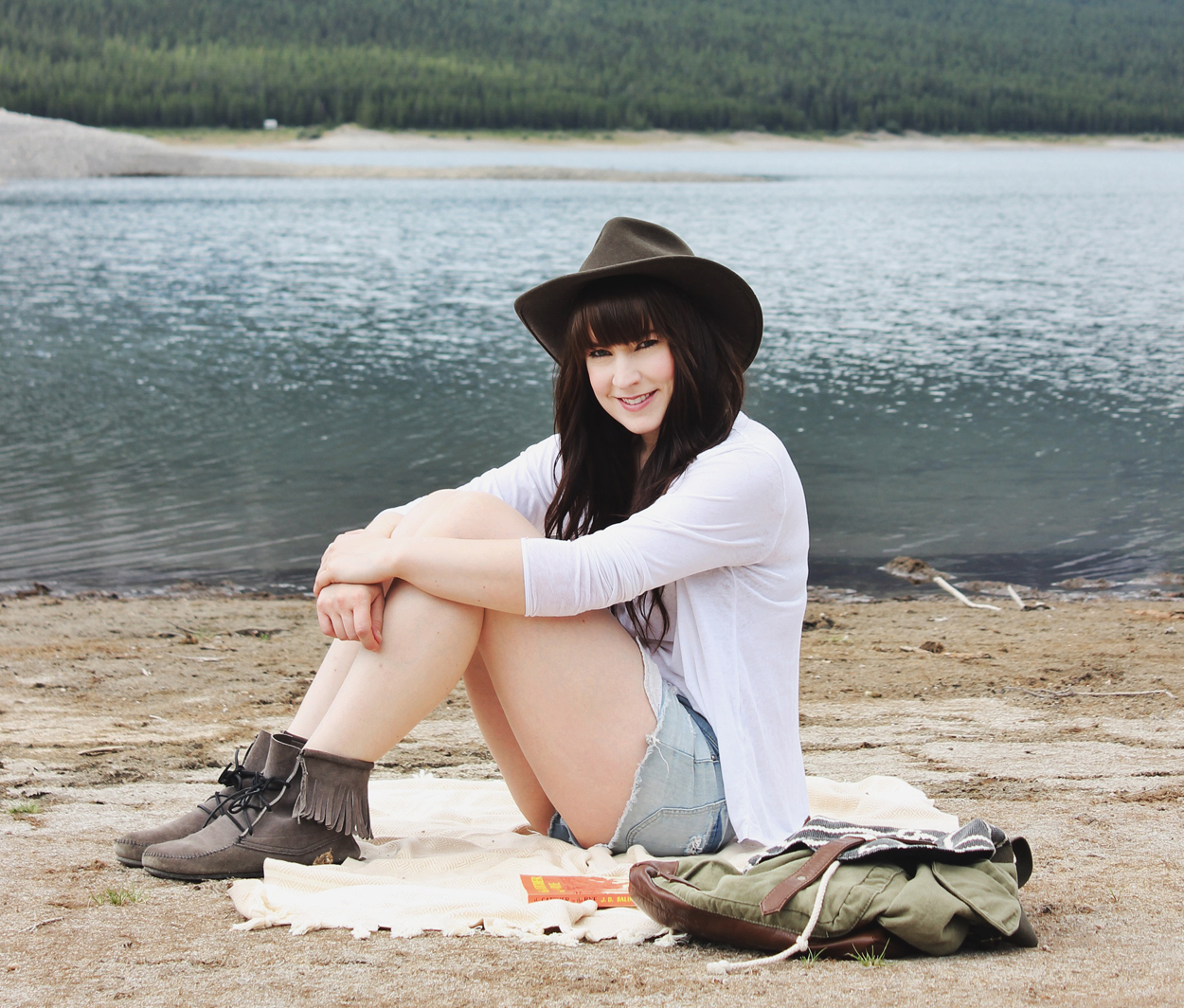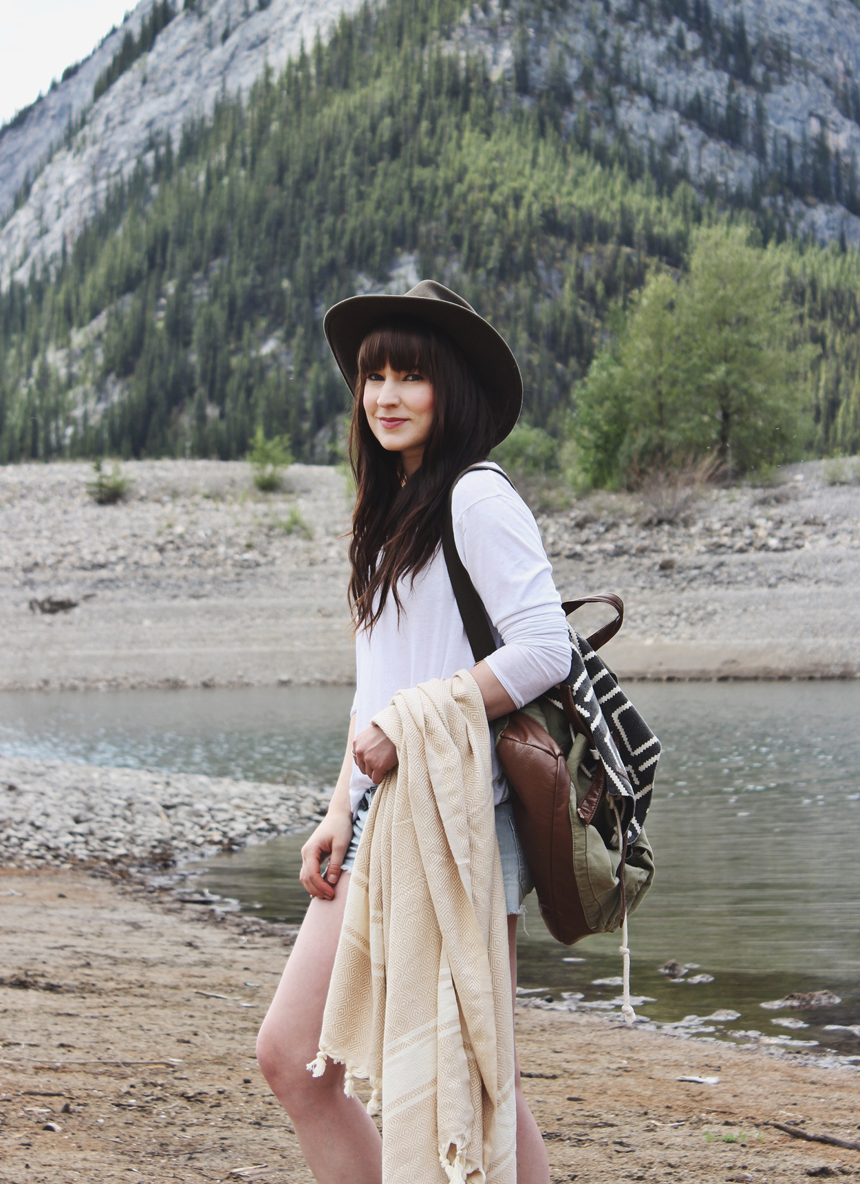 Outfit Details: Top: Volcom / Shorts: Roxy / Backpack: Billabong / Towel: C/O The Wanderly / Moccasins: Minnetonka