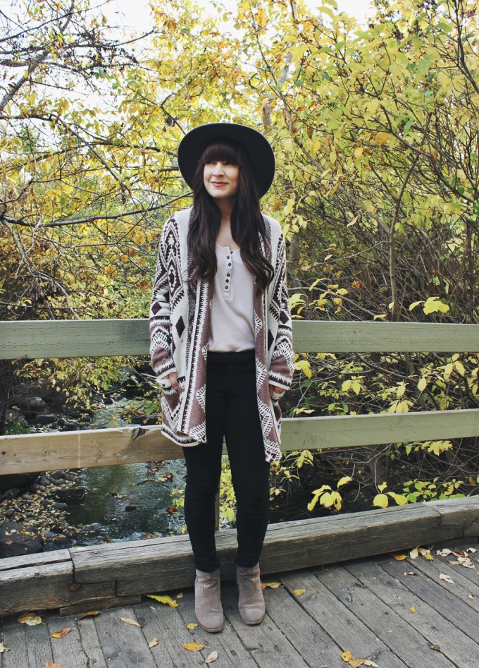 Another one of my favourite things about this time of year is wearing big cozy sweaters. Because it’s not cold enough yet to warrant a really warm coat, a sweater or a cardigan can easily take it’s place. I especially like cardigans that have awesome patterns like this one by Lovestitch. It’s one of my favourite new pieces for Fall.