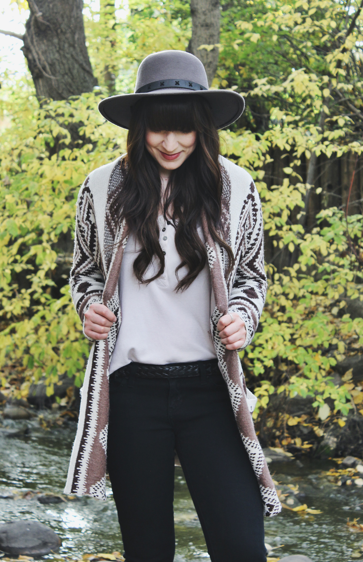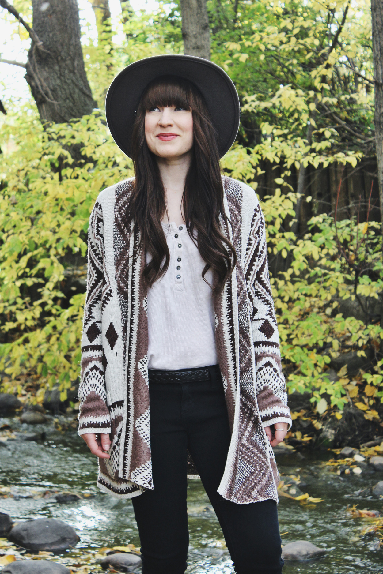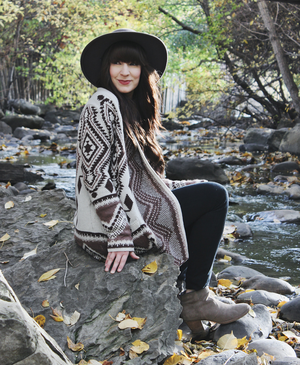 Another one of my favourite things about this time of year is wearing big cozy sweaters. Because it’s not cold enough yet to warrant a really warm coat, a sweater or a cardigan can easily take it’s place. I especially like cardigans that have awesome patterns like this one by Lovestitch. It’s one of my favourite new pieces for Fall.