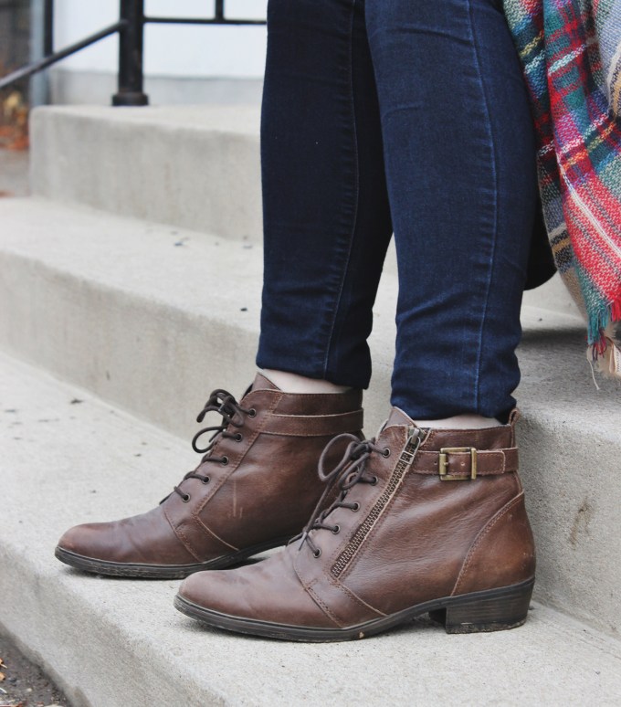 Love this look – the plaid scarf is the perfect touch. I’m not mentally prepared for cold weather either! Hope it gets warmer for you for awhile. 🙂