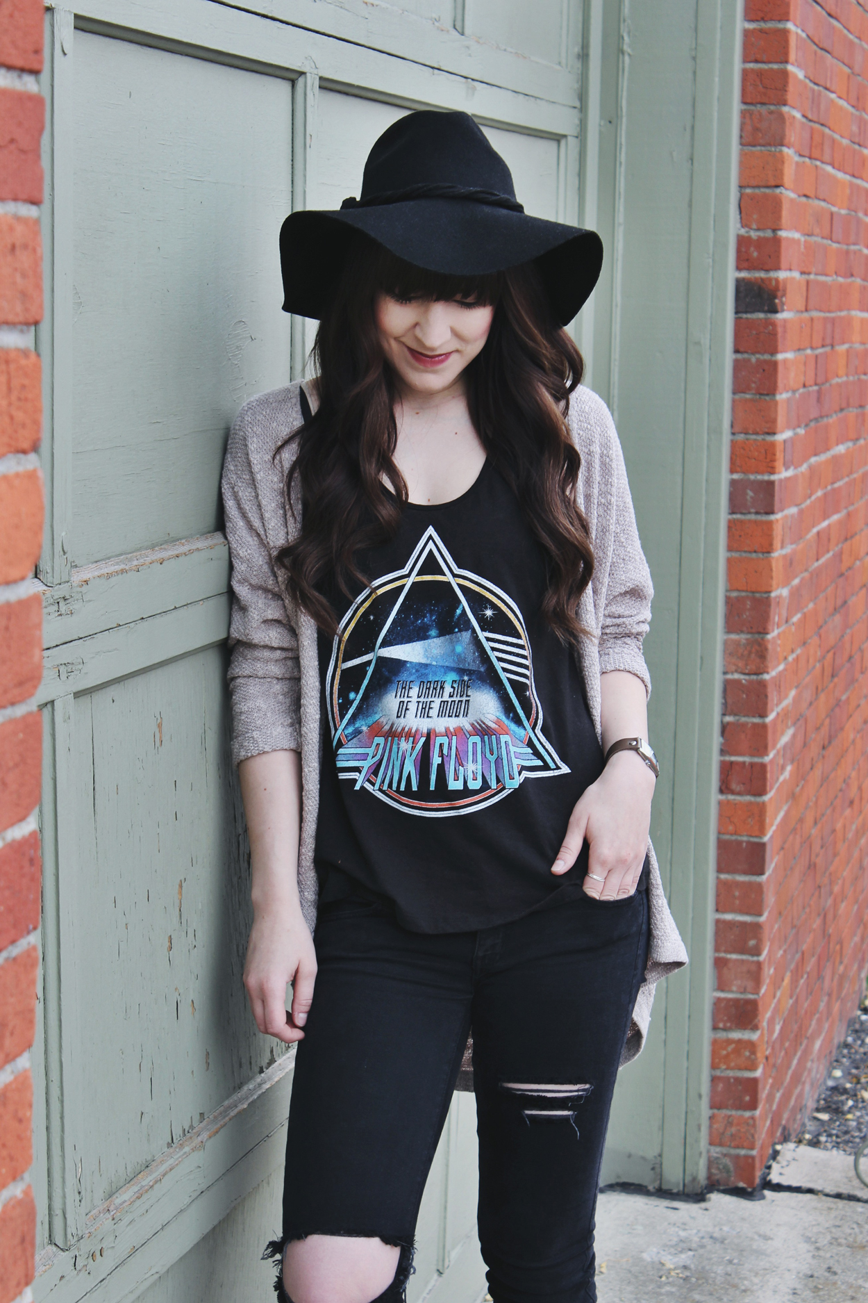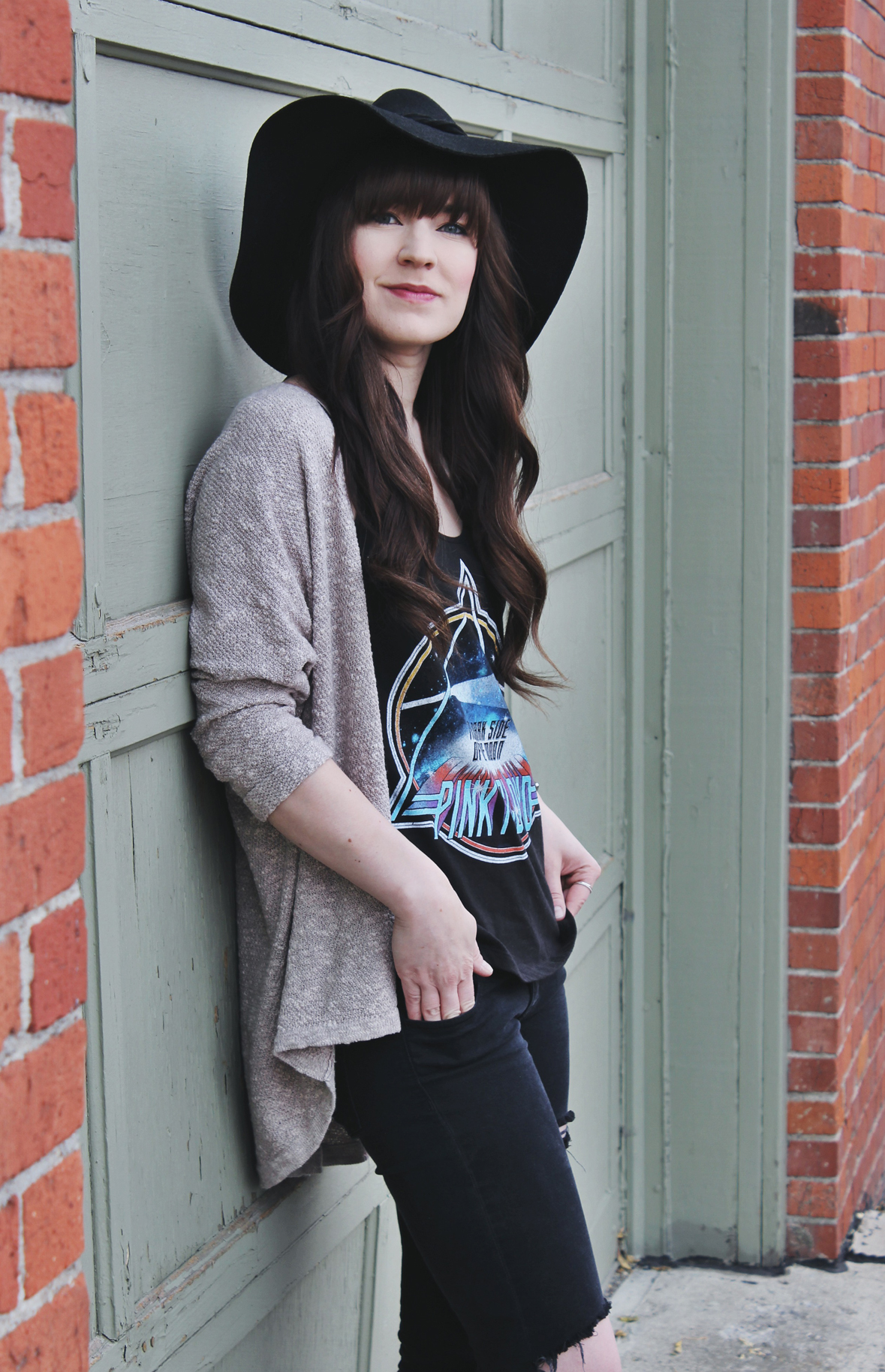 Outfit details: Hat: Free People / Cardigan: C/O Gentle Fawn / Top: Forever 21 / Jeans: American Eagle /