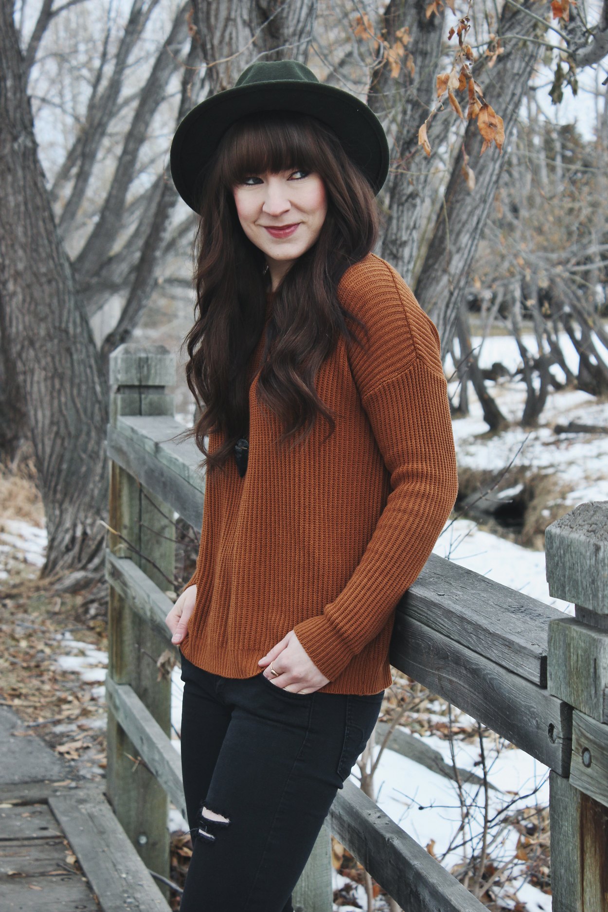 I love this look, and the combo of burnt orange and forest green. They look great on you! I actually did a Colour Crush post back in the fall all about rust. I’ve been obsessed with those tones lately. π