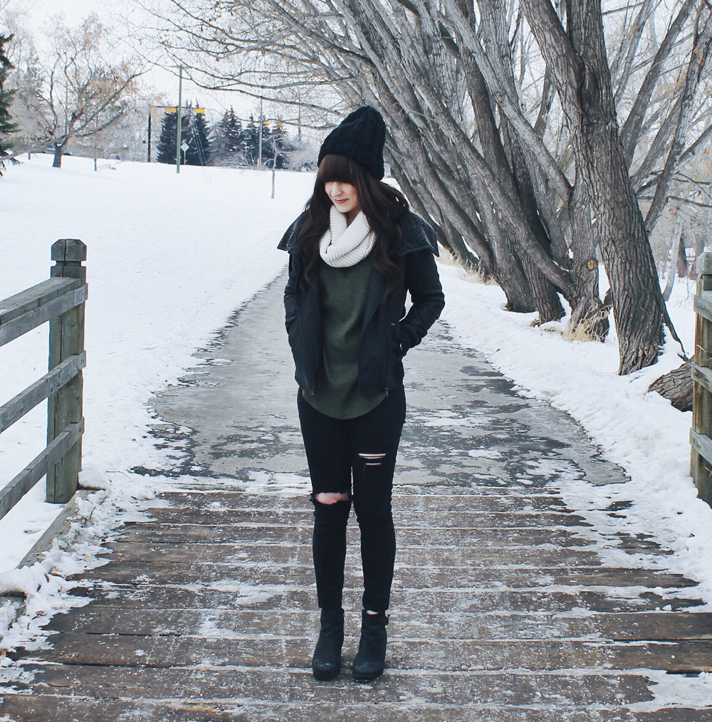 Winter in Alberta can be pretty harsh and cold sometimes . On particularly cold days it’s easy to want to sit inside and hibernate until spring. I find the best way to deal with the cold is to just toughen up and put on a warm wool hat and scarf. It’s even better if you have more than one of each item, then you can mix it up a little and you won’t get sick of wearing the same accessories every day.