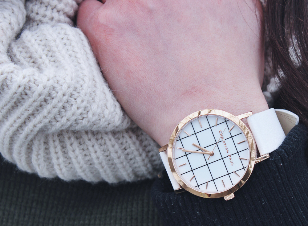 This look consists of my warm faux leather jacket (My lighter one just didn’t cut it for the temperature on this day) some ripped jeans and a pair of my favourite ankle boots. To accessories I added this Christian Paul Watch, the latest addition to my watch collection!