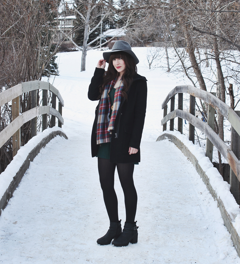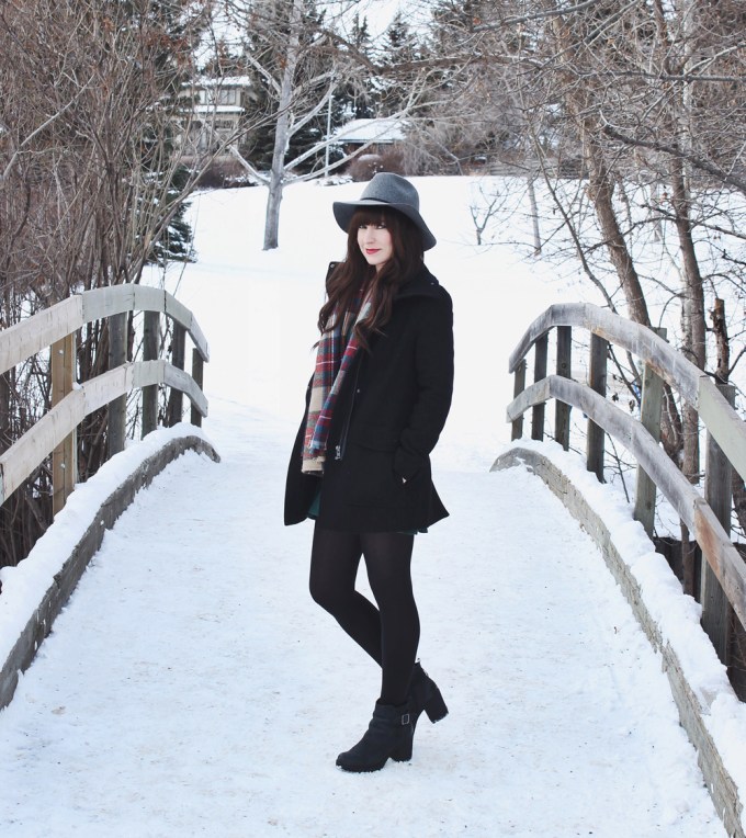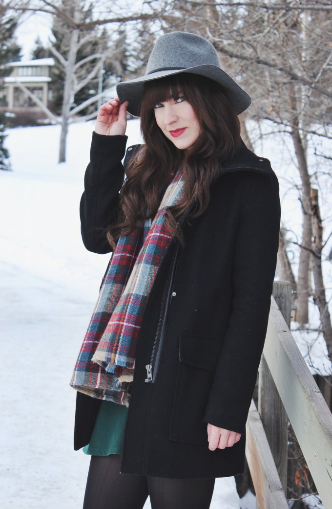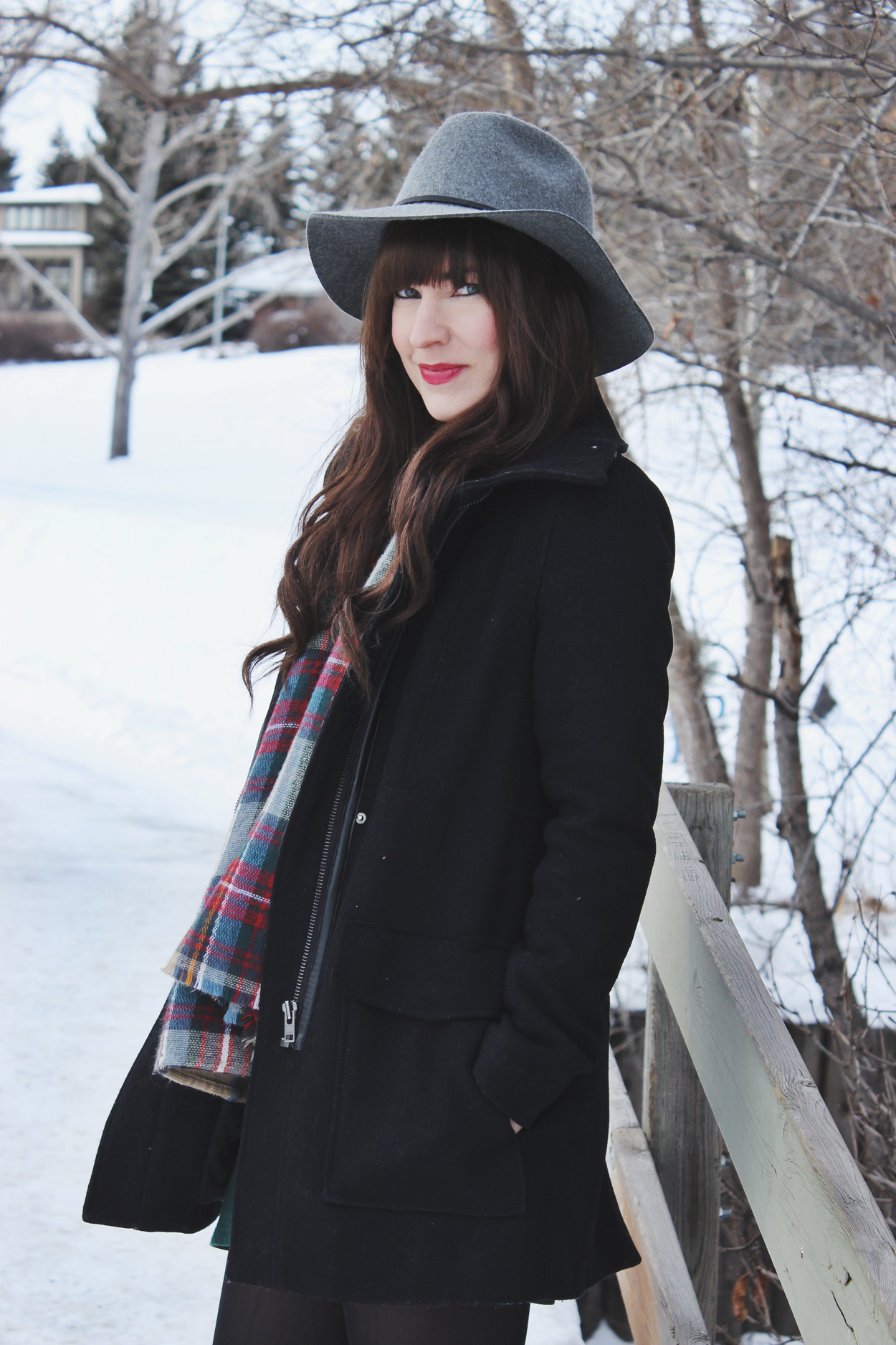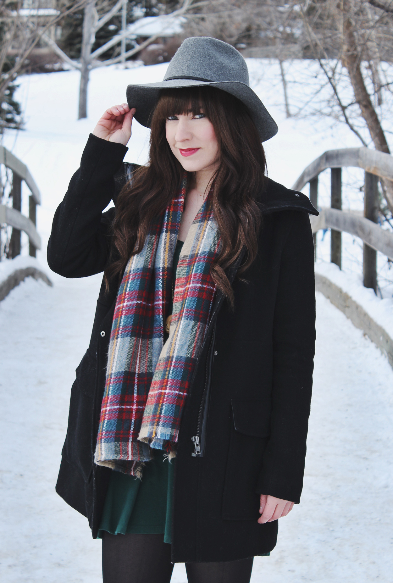 For this look I wanted to keep everything simple and classic. I think that describes this particular coat and hat perfectly. Because most of the outfit is really dark, I added this plaid scarf for a pop of colour and a bit of pattern. I honestly think that the right accessories can make or break a look. I think that it’s important to find accessories that really compliment and match the style that you are going for.