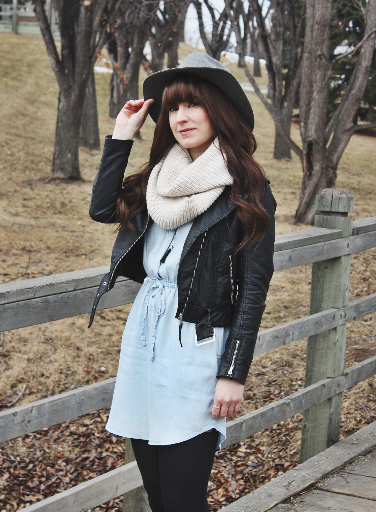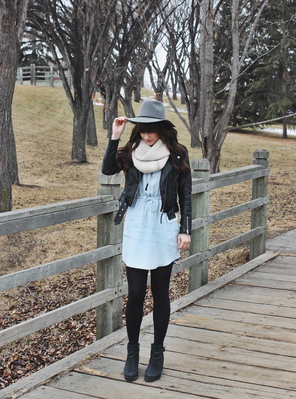 I’m slowing starting to transition my wardrobe from winter to spring and so far it’s been going well! The fact that it’s warm enough out for a light jacket instead of a heavy winter one is very exciting!  This dress will be ideal for spring because it’s nice and light. With a pair of tights and a scarf it also works well for the current weather. When you live somewhere that has very drastic seasonal changes like here in Alberta you always have to keep the weather in mind when picking out outfits.