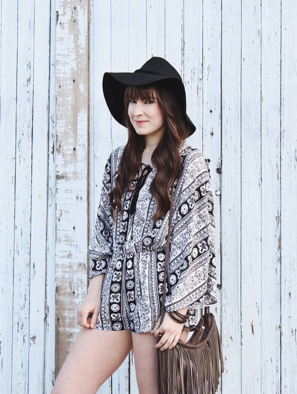 It’s only the beginning of May but lately we’ve been having summer like weather in Calgary. Because of this, i’ve been able to wear a lot of items that I wouldn’t normally being wearing right now. One of those items in particular is this adorable playsuit by Wonderland Honolulu. I’m a sucker for a cute pattern and the fit is perfect, not to mention that anything one piece makes choosing an outfit incredibly easy. This look was a no brainer, add a pair of sandals and a floppy hat and you’re good to go! I also added a few other accessories, including one of my favourite rings by Mejuri. This look is perfect for a hot summer day, whether your out at the beach or just hanging out around town.