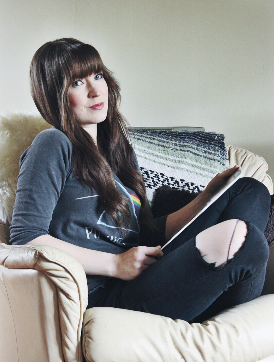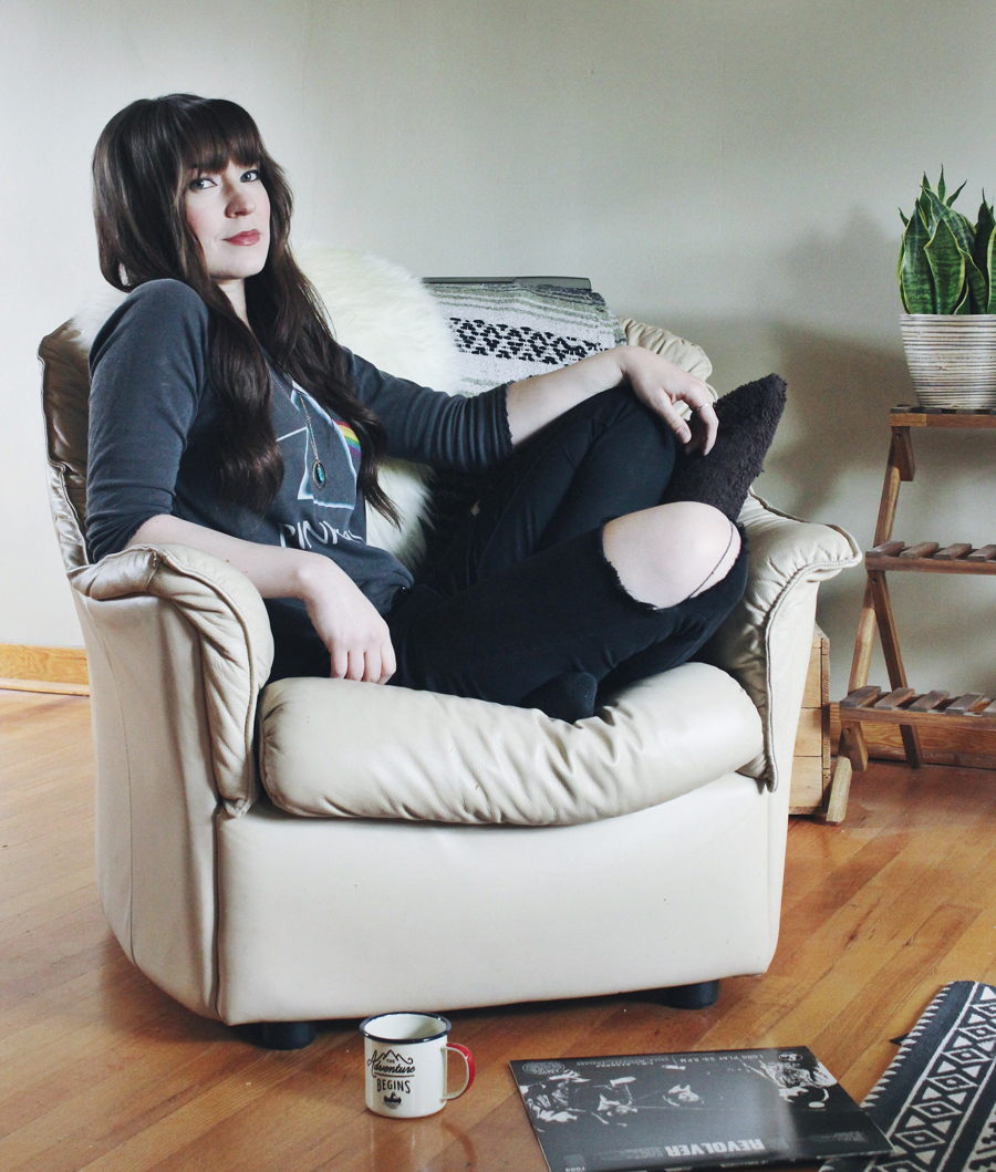 The holiday weekend in May is known for being rainy and cold, so it wasn’t too surprising when the weather this weekend was exactly that. Instead of shooting outfit photos outside like I normally would, I decided it was a better idea to stay warm and shoot them inside for a change. I dress pretty casually most of the time and even more so when i’m at home relaxing. I have a soft spot for band tee’s and ripped jeans and thats exactly what this outfit consists of. I also added on of my favourite Young Hearts necklaces to finish off the look!