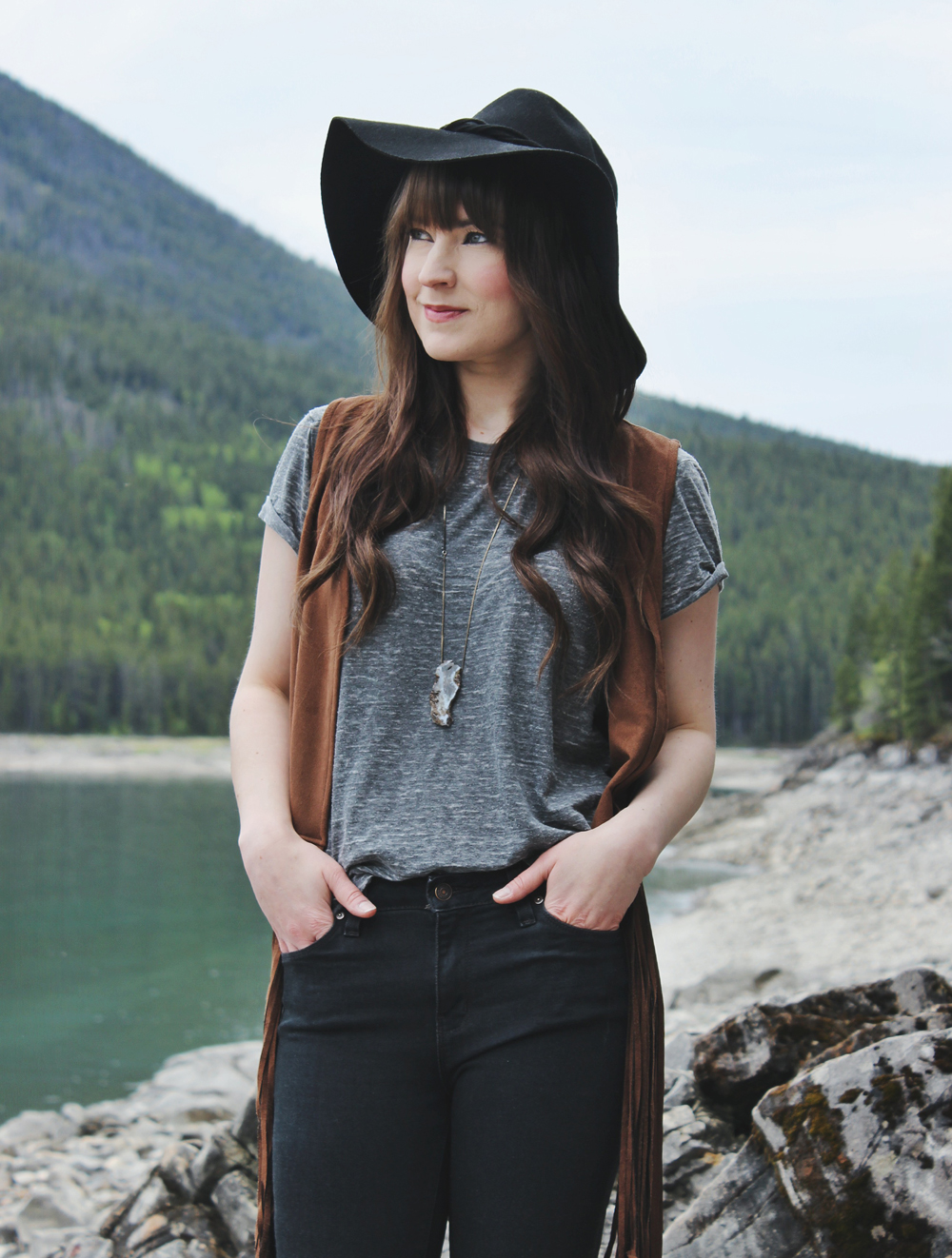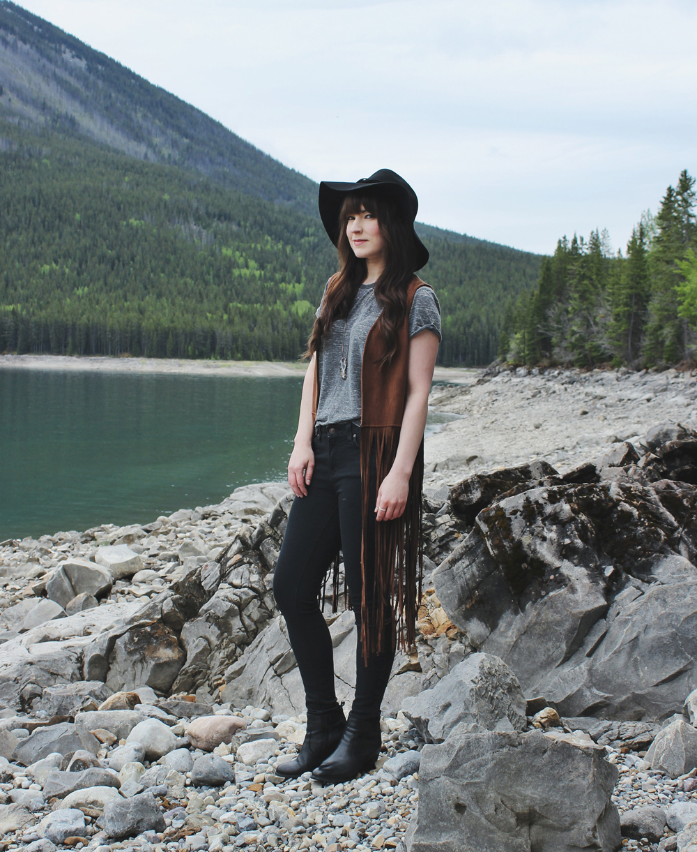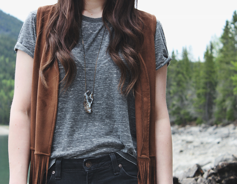 It’s safe to say that I have an obsession with fringe and because of that this faux suede vest is one of my favourite pieces for spring. As much as I love the classic t-shirt and jeans combination, it’s nice to mix it up sometimes with a vest or a jacket. I love how this vest adds a bit of colour and texture to an otherwise plain look!