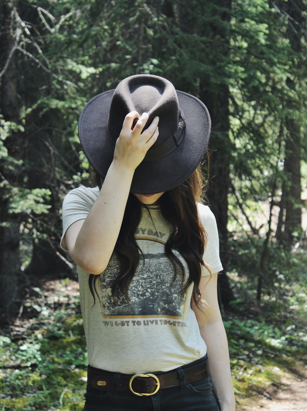 Outfit Details: Hat: Dorfman / Shirt: C/O Lyric Culture / Jeans: Just Black / Boots: Steve Madden / Belt: Billabong