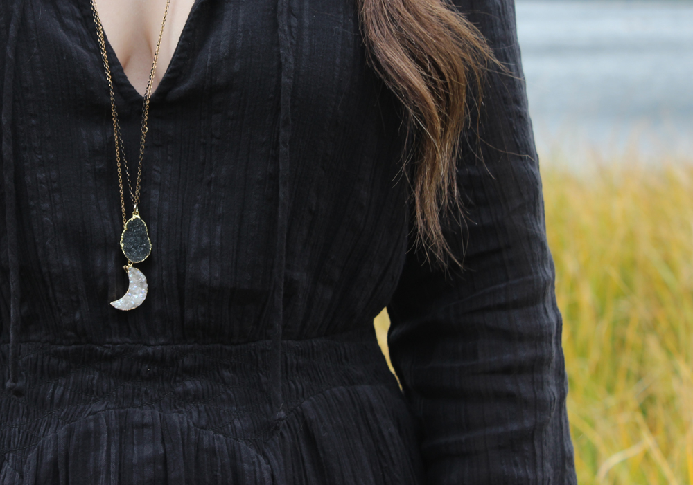 Outfit Details: Dress: C/O Volcom / Hat: C/O Goorin Brothers / Necklaces: C/O Shesso / Boots: Steve Madden