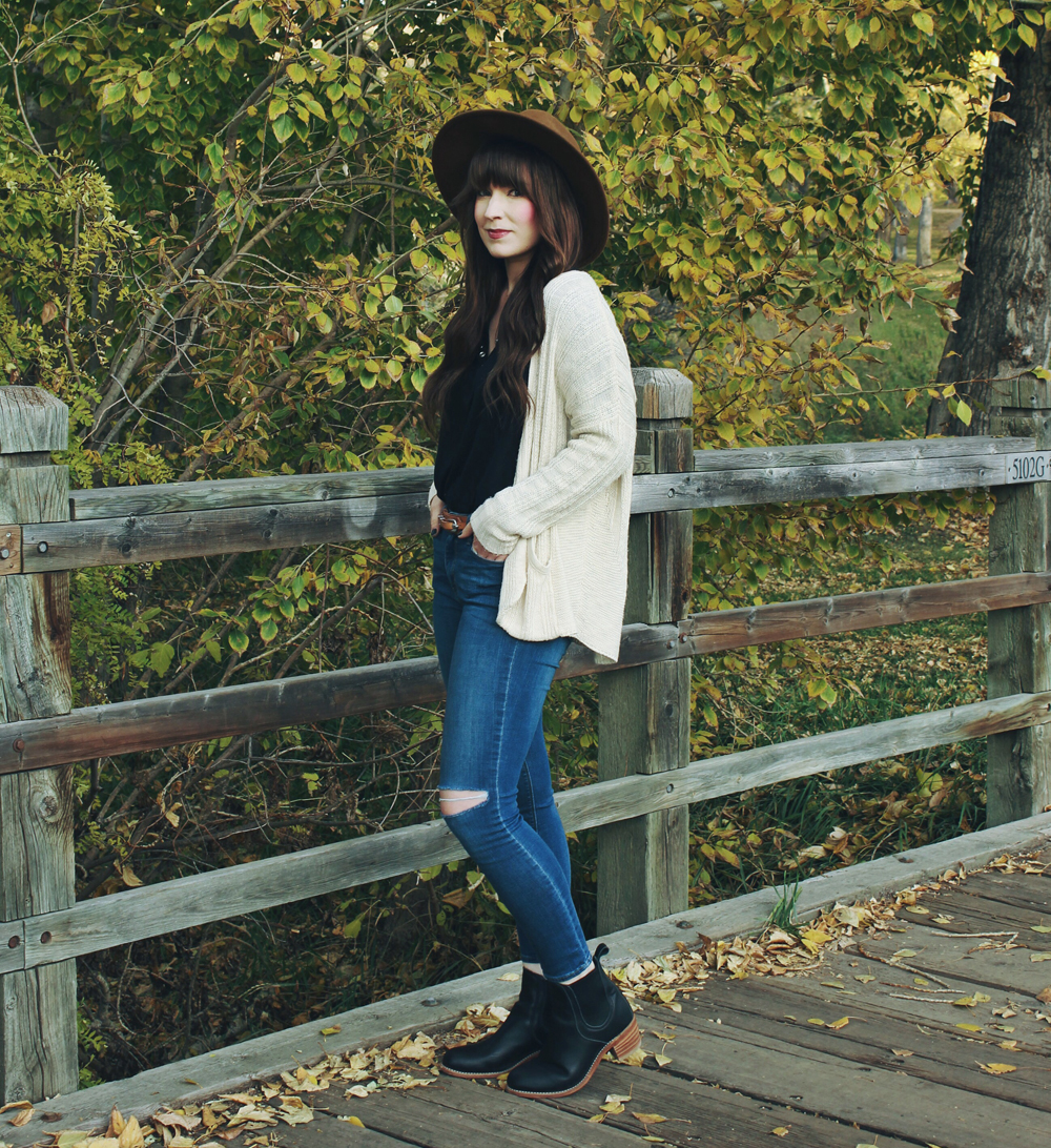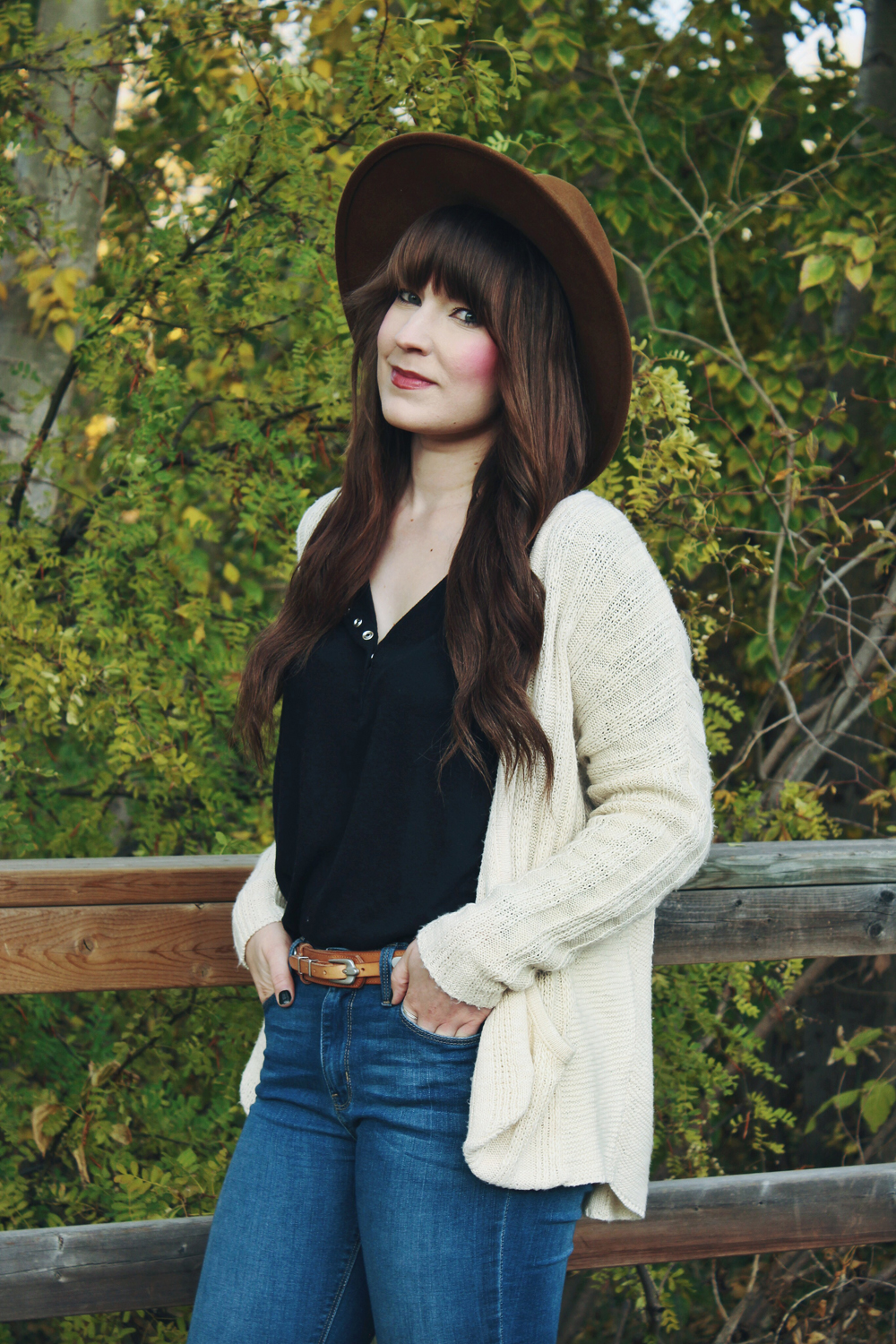 Outfit Details: Cardigan: Ecote / Henley: C/O Volcom / Jeans: Just Black / Boots: C/O Redwing / Hat: C/O Goorin Brothers