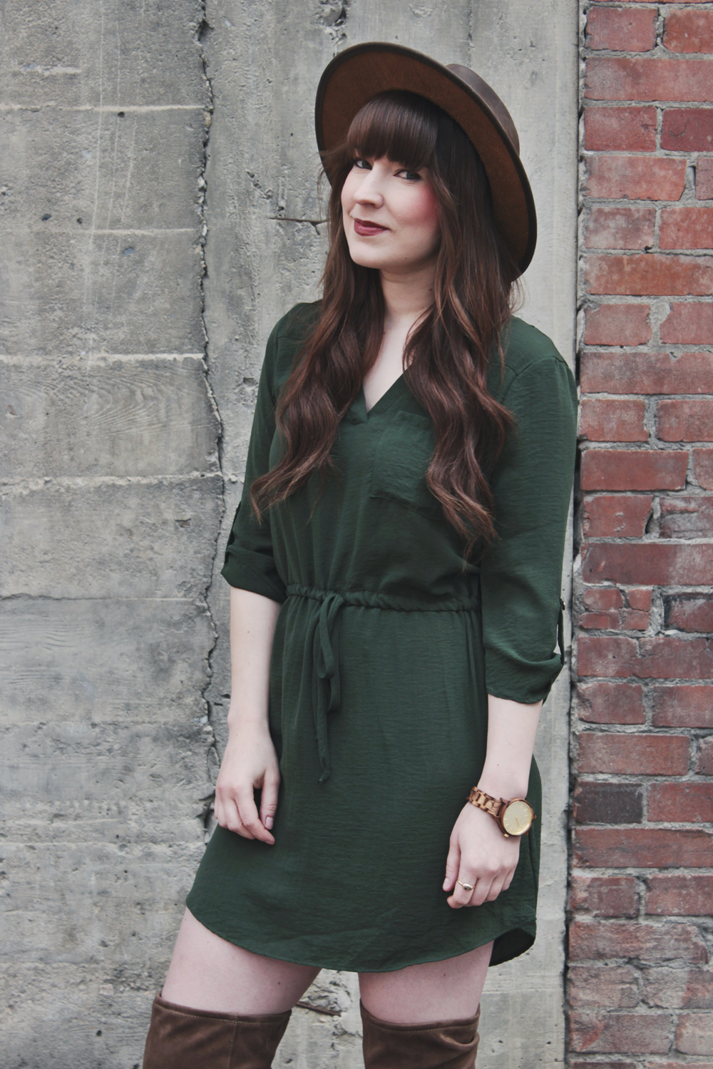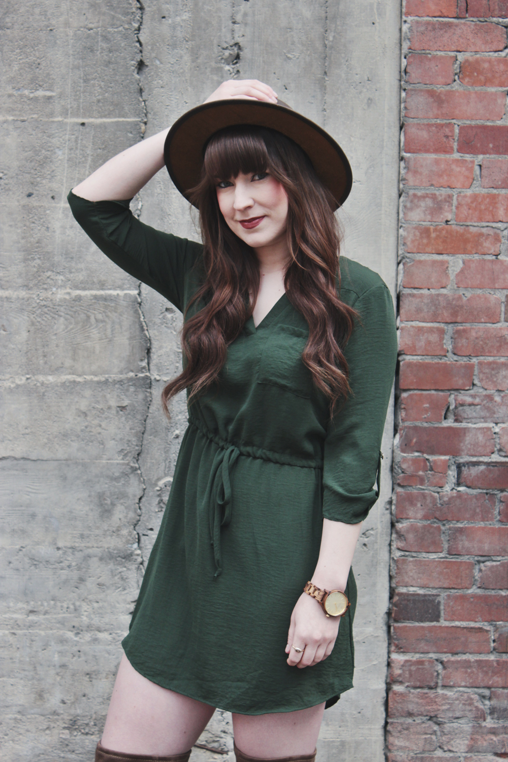 Outfit Details: Watch: C/O JORD / Dress: Jella C. /Boots: Aldo / Hat: Goorin Bros