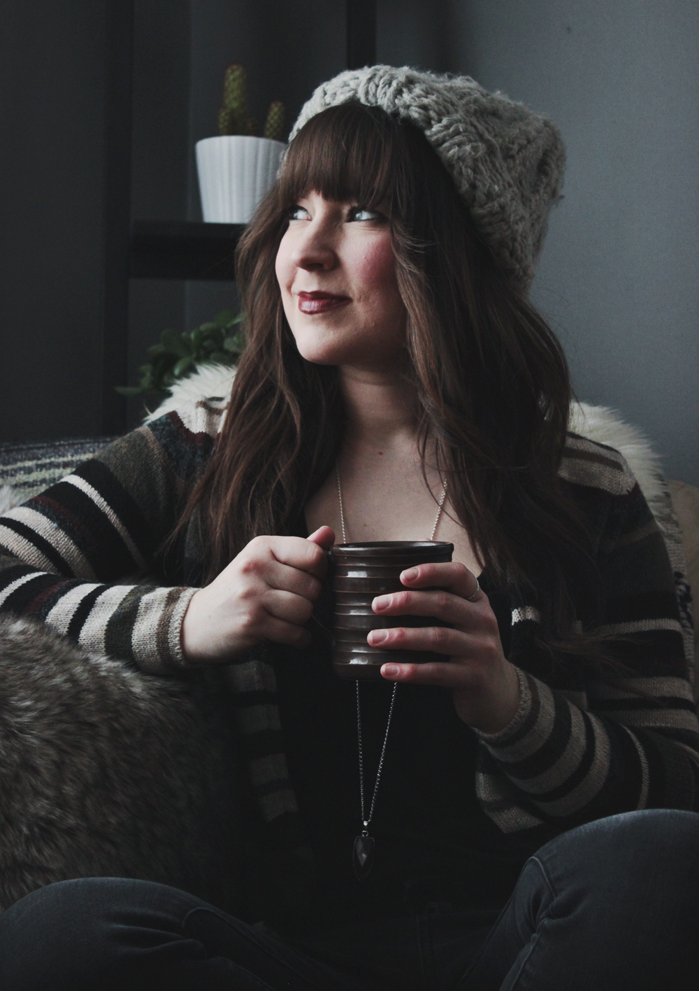 As much as I love getting out and doing winter activities, I equally love staying indoors and being cozy. There’s nothing more relaxing than cuddling up on the couch with a good book and a cup of tea. As for my winter style, I like to keep it as cozy as possible most of the time. Cardigans and wool hats are at the top of my list when it comes to getting dressed this time of year. This cardigan in particular is one of my favourites!