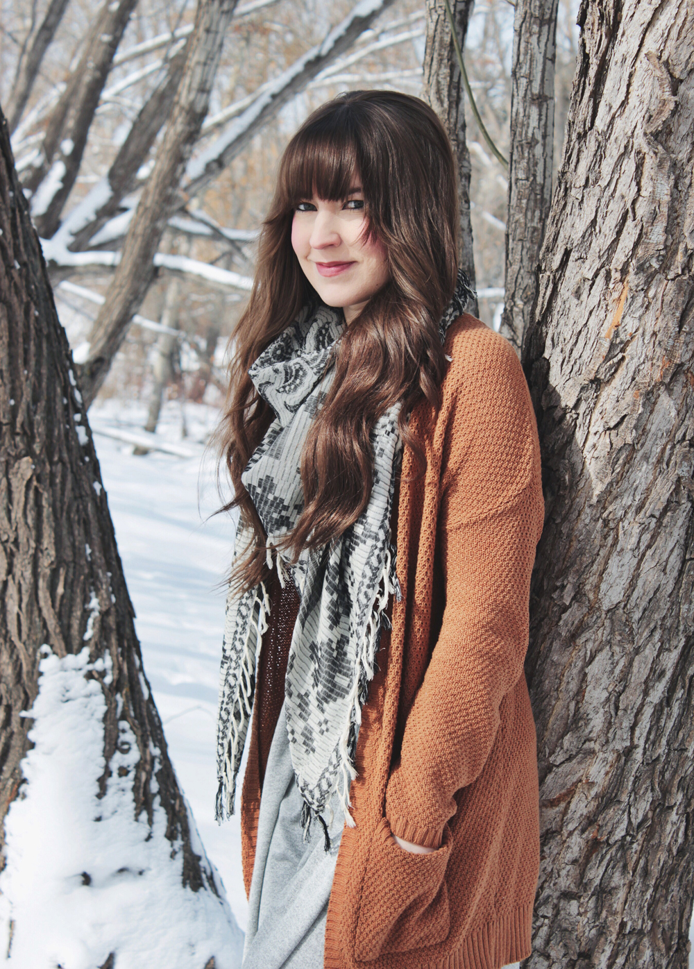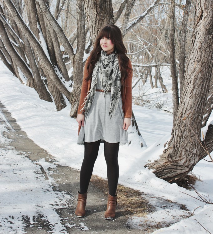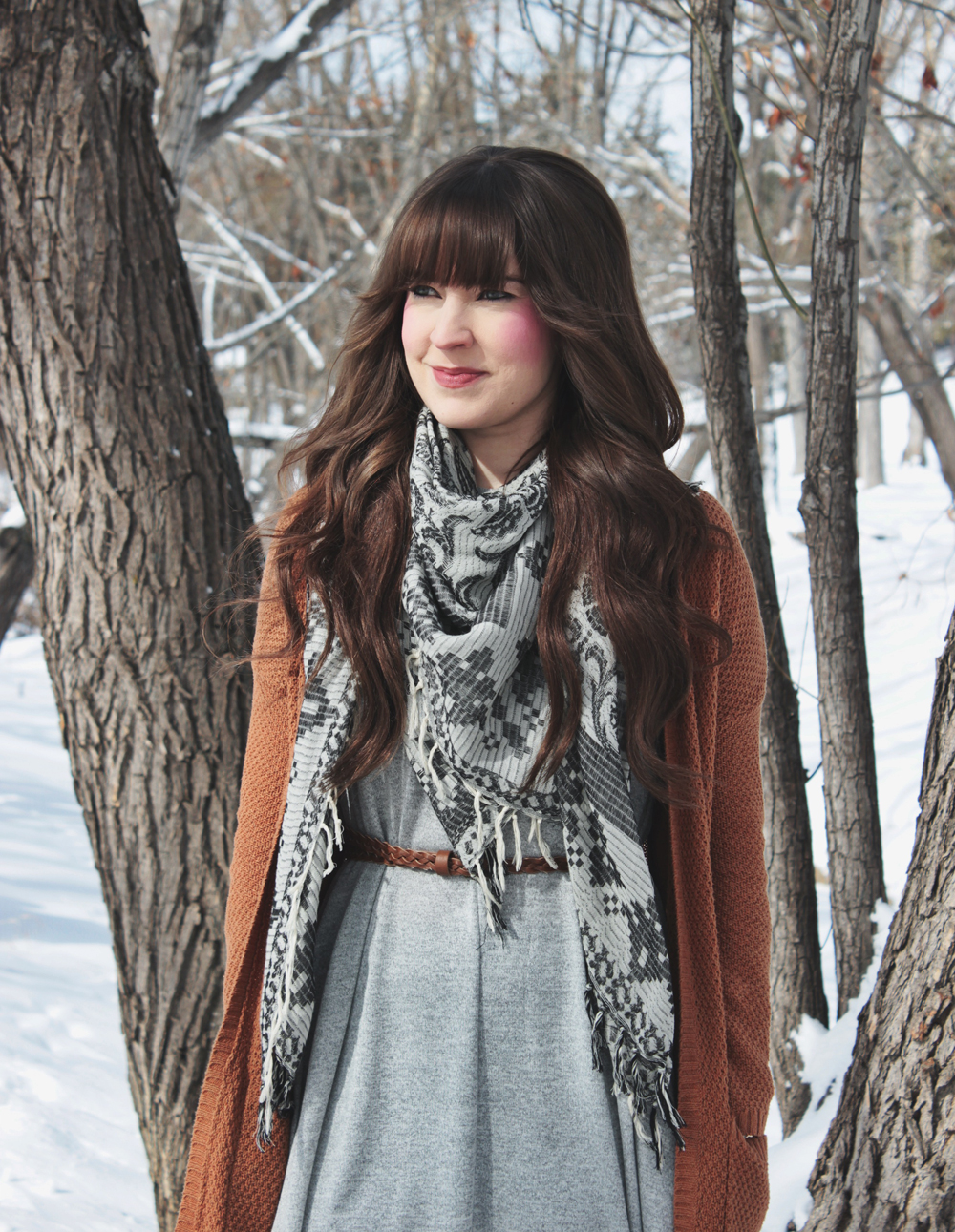 I took these photos a few weeks ago when there was still a lot of snow. Things have changed drastically since then, and i’m not complaining! It’s been warm enough lately that a cardigan is sufficient during the day time. For this look, I paired some old and new favourites of mine. This grey dress is the newest addition to my wardrobe, and it’s easily one of my favourites. I love plain cotton dresses for how versatile they are. There are so many different ways you can wear it, and I love that! To accessorize I added one of my favourite scarves and this gorgeous new Daniel Wellington watch. You still have time to use my discount code FOXANDFERN15 for 15% at danielwellington.com it’s good until April 30th 2017!