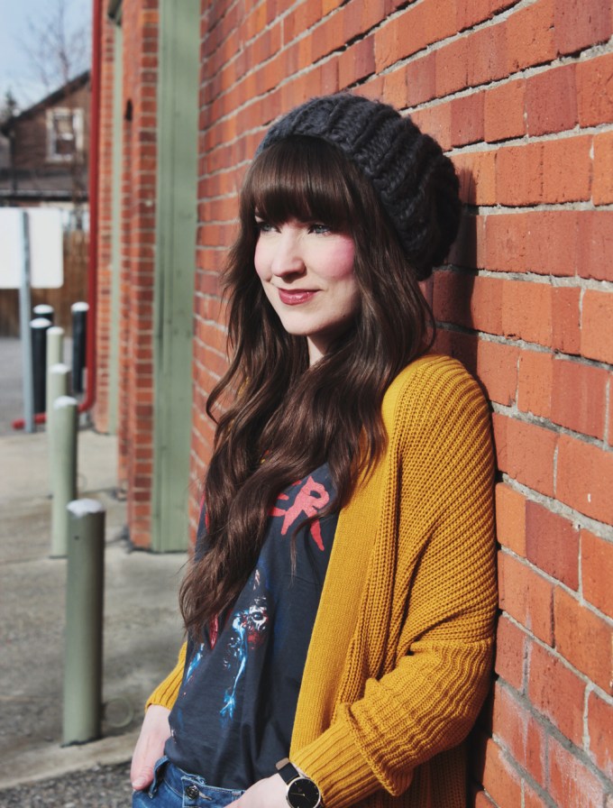 It’s been warm enough lately, that I can get away with just wearing a cardigan. Not needing to wear a jacket is the best feeling! I also realize that a wool beanie is not very spring like. I’m still going to wear it until it gets really ridiculous though, because that’s how I roll haha!
