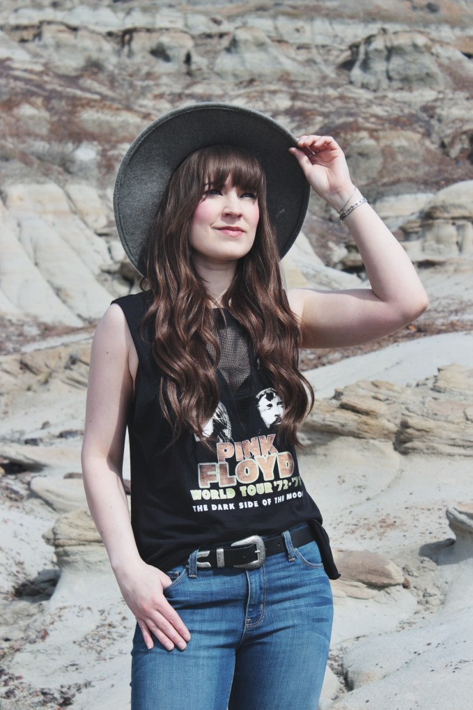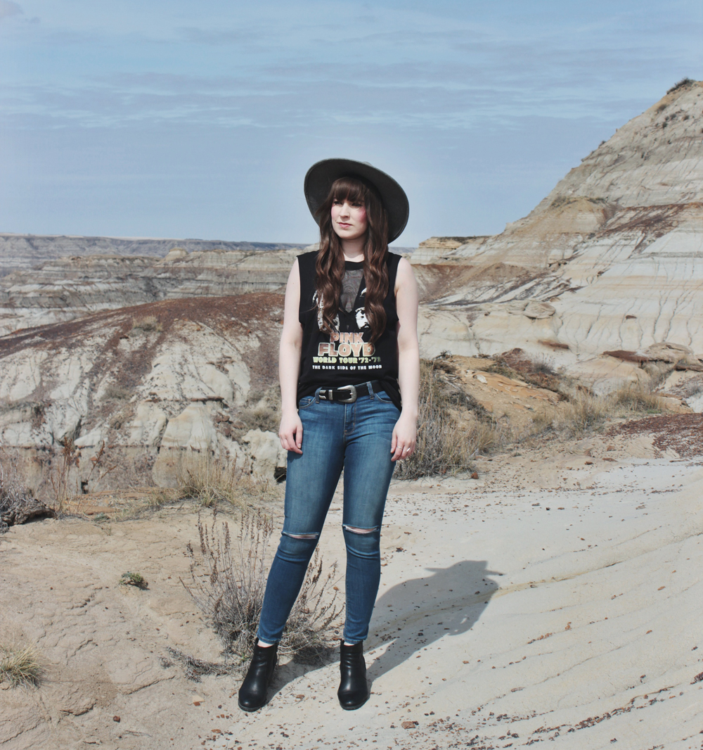 Now that it’s spring time, I decided that a trip to Drumheller was in order. It’s the closest thing to the desert that we have in Alberta, so it makes a great backdrop for some of my outfits. It also gives Tyrell a chance to look around for Dino bones, and other cool things that can be found in the area… if you’re lucky.