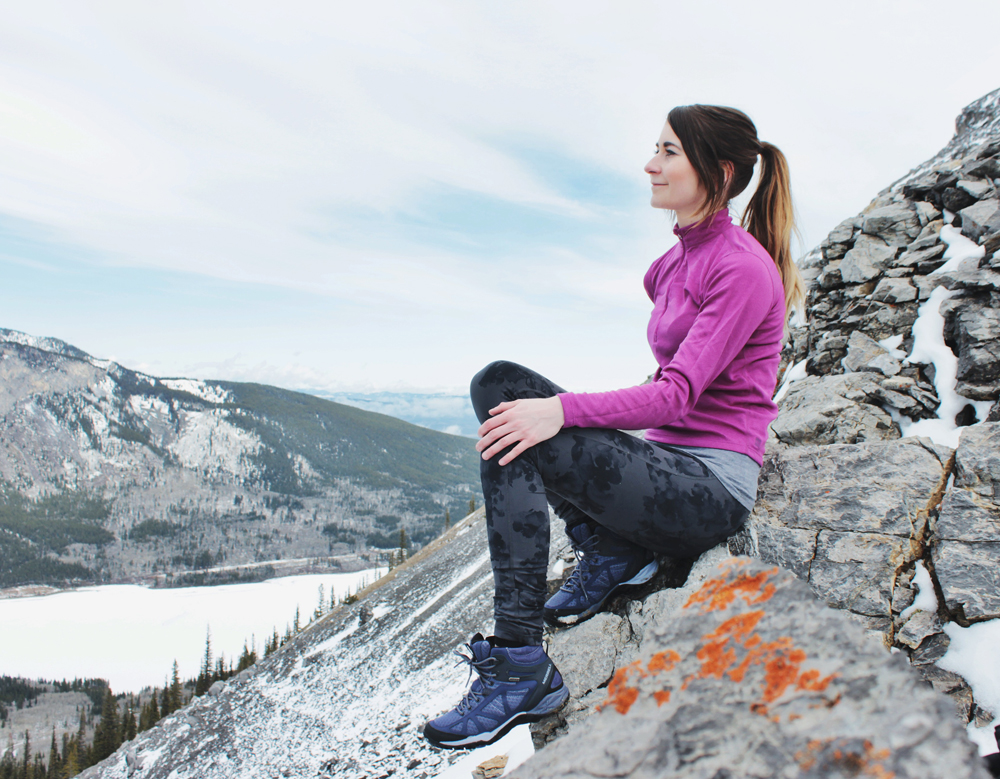 For this hike, Jaclynn and I had the pleasure of testing out the Merrell Siren Sport Q2 mid hiking boots. These boots have a few awesome features including: the M Select DRY impermeable membrane, that seals out water and lets moisture escape. They also have Q FORM 2 dual-density midsole with heel-centering technology that provides gender-engineered alignment and comfort. I found these boots to be very comfortable, and they had really good grip, especially in the snowy areas of the trail.