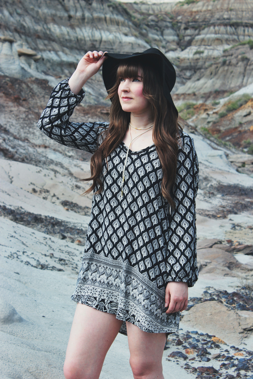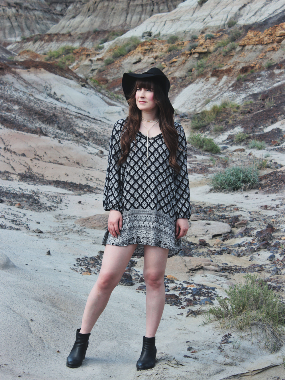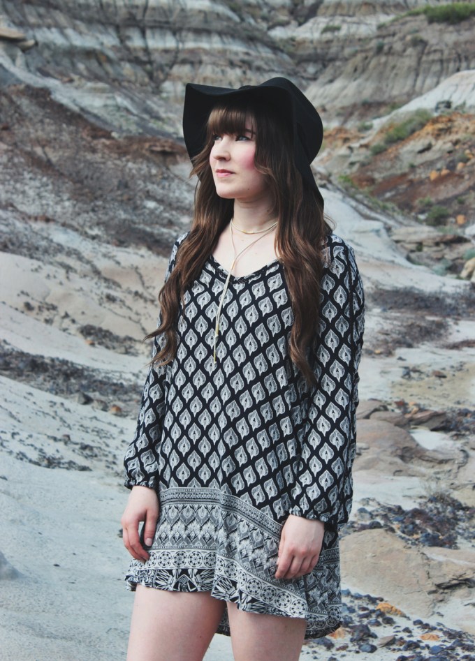 Cute! Love summer dresses too.. because the summer is too short here in AB! Nice Badlands background! 🙂