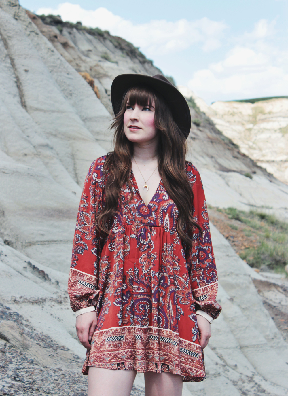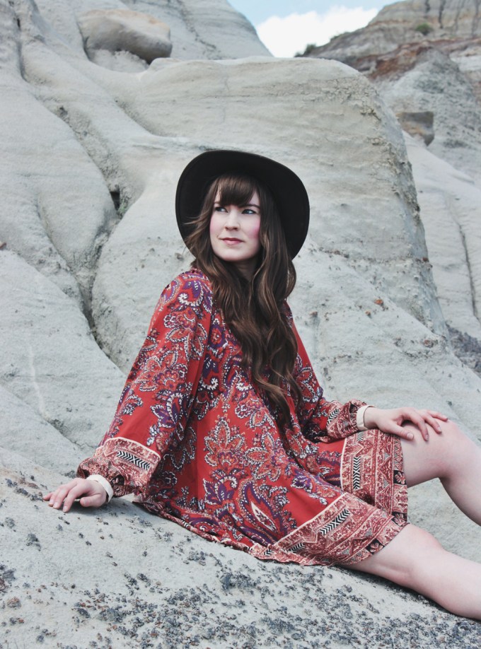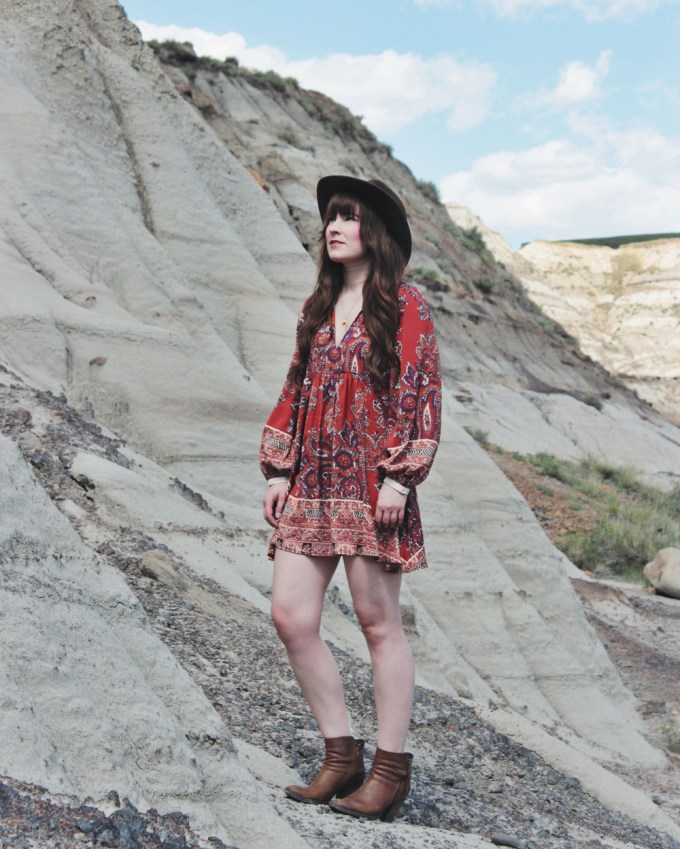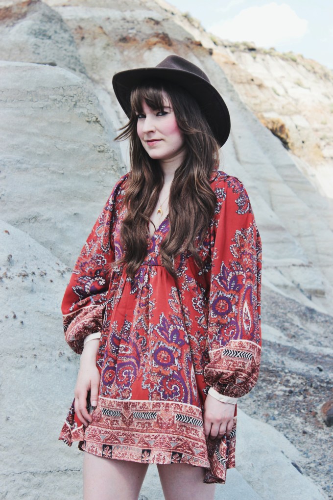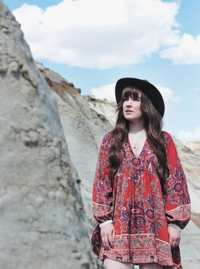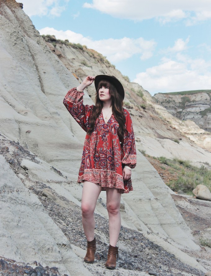 It’s been really hot in Calgary lately and i’m not quite used to it yet. I’m not sure that I ever really do get used to it, but I shouldn’t complain. It’s better than freezing cold weather! Because of this, i’ve been wearing a lot of dresses and shorts lately. This particular dress is one of the latest additions to my wardrobe. Needless to say, i’m absolutely obsessed with it! I love the pattern, I love the fit and I kind of want to wear it everyday. Because the print on this dress is so bold, I kept my accessories really minimal. I added one of my new Shesso necklaces, and one of my favourite hats to finish off the look!