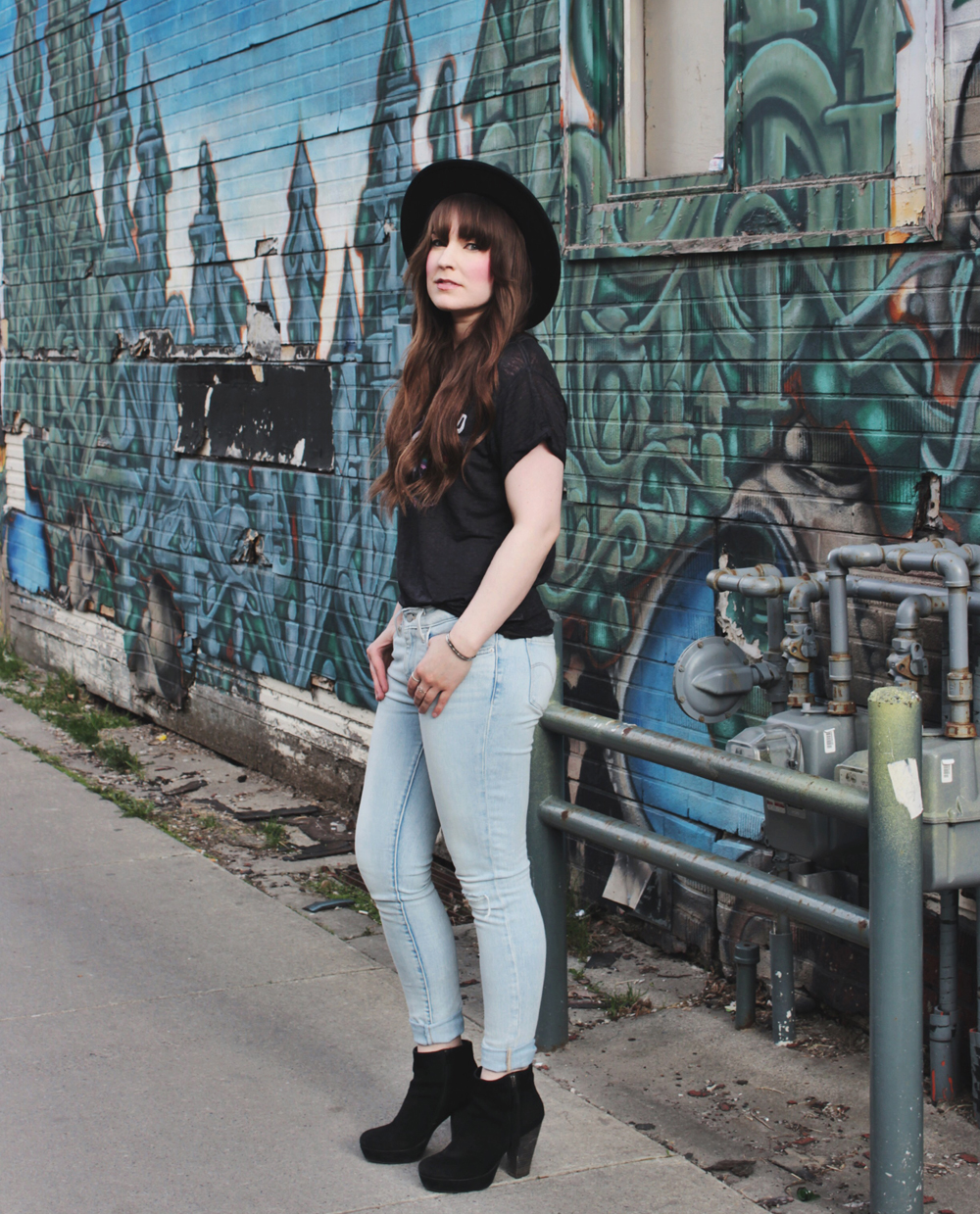 This look is both similar and different to my usual style. I have a large collection of Band tee’s so this one fits nicely into the collection. These jeans on the other hand, are much lighter than anything I ever wear. I usually opt for a medium to dark wash when it comes to denim, so this is really stepping out of my comfort zone. Light wash denim has a distinctly summer feel to it, so that makes it perfect for this time of year!