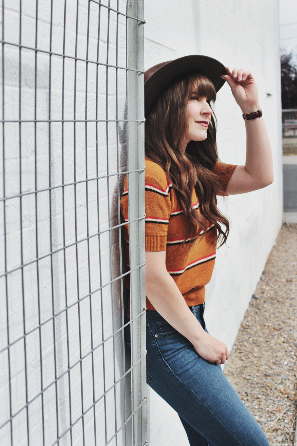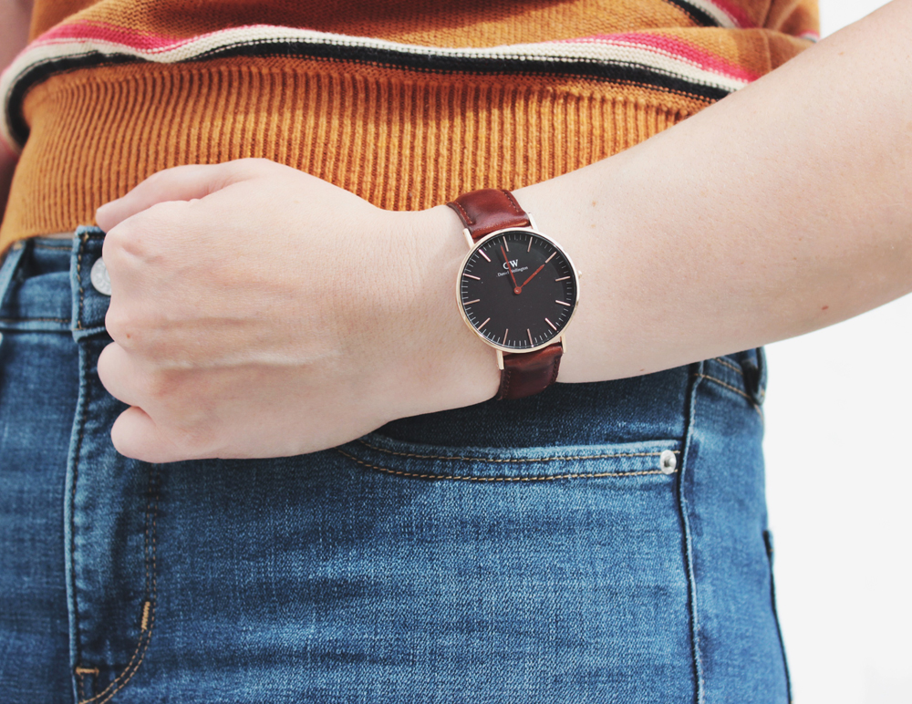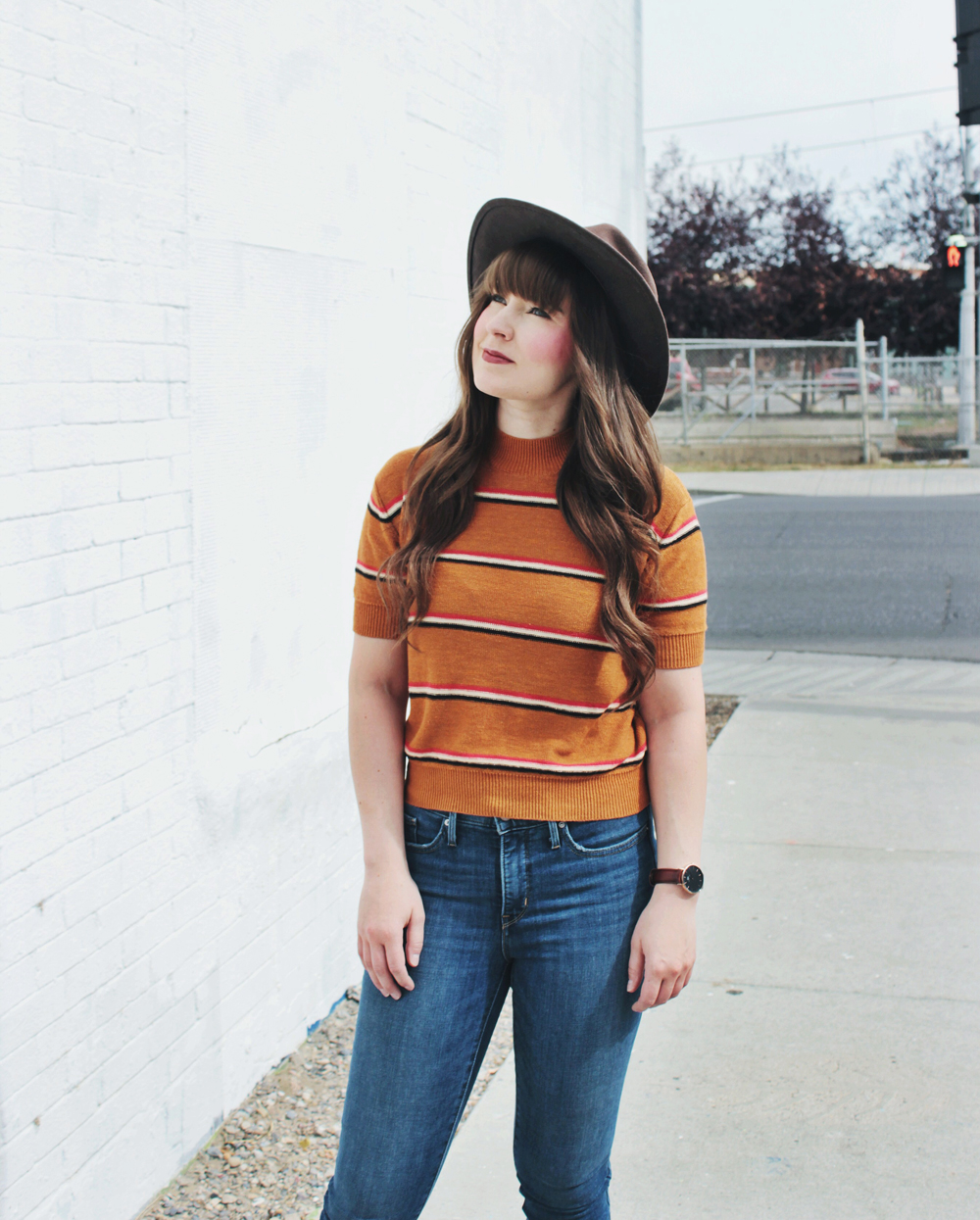 I don’t know about everyone else, but when it comes to fall fashion, I have a hard time not spending all of my money! I mean, I seriously want to buy everything! I think I need to start a savings fund that is dedicated to fall fashion, that I only use in September and October. Speaking of fall fashion, my absolute favourite trend right now is the mock neck. I’ll take it in the form of sweaters, dresses, long sleeved tops, basically anything I can get! That being said, I love this sweater from Free People. It’s got a cool retro vibe to it that I love, and the colours are awesome! As for the rest of the look, I added a pair of Levi’s that are a new addition to my wardrobe. They are the 311 shaping skinny, and they are basically the most comfortable jeans ever! And lastly, to accessorize I added one of my favourite DW watches, and a hat, because that’s just how I roll!