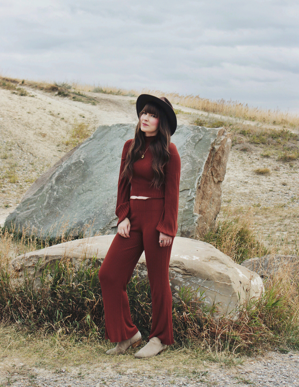 Outfit Details: Set: Free People / Boots: C/O Clarks / Hat: Dorfman /Necklace: Jewelry By Amanda