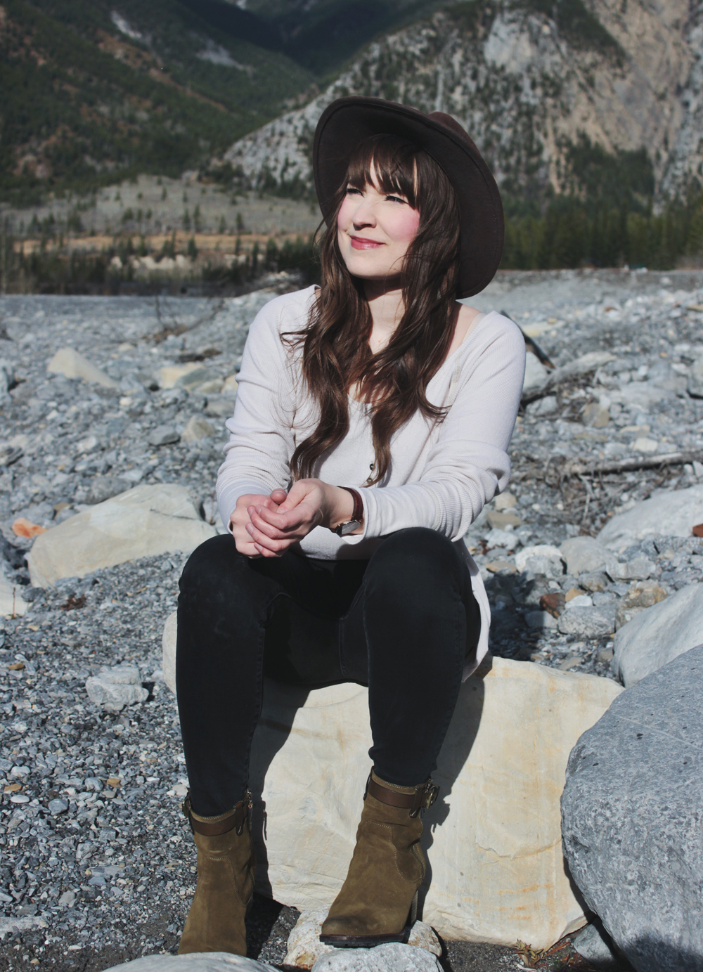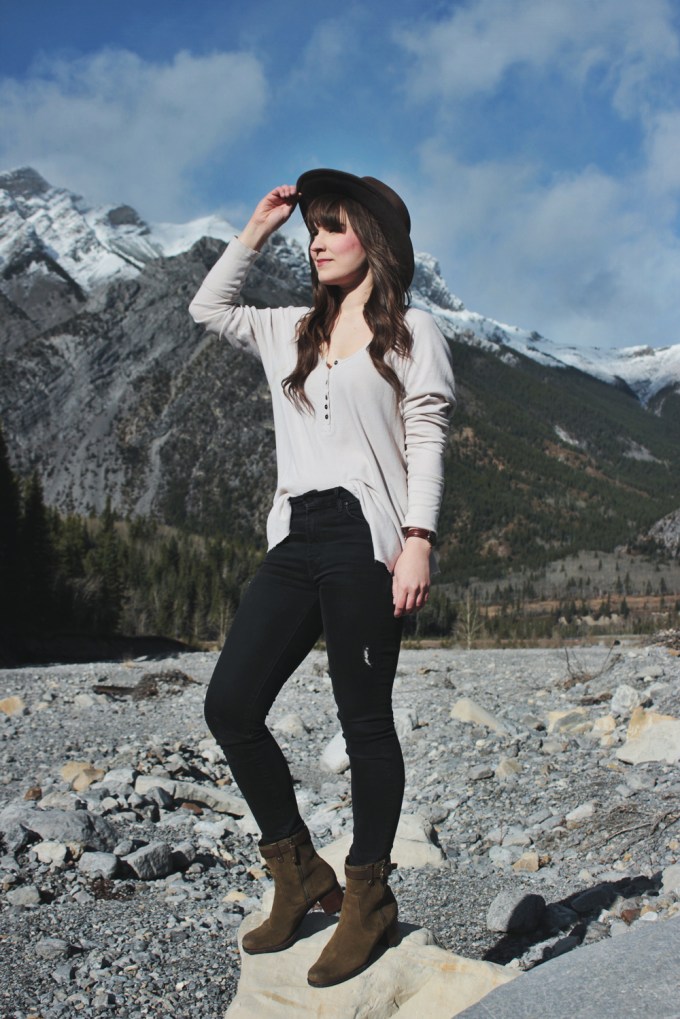 Outfit Details: Henley top Truly Madly Deeply / Jeans: Mother / Boots: C/O Trask / Hat: Dorfman