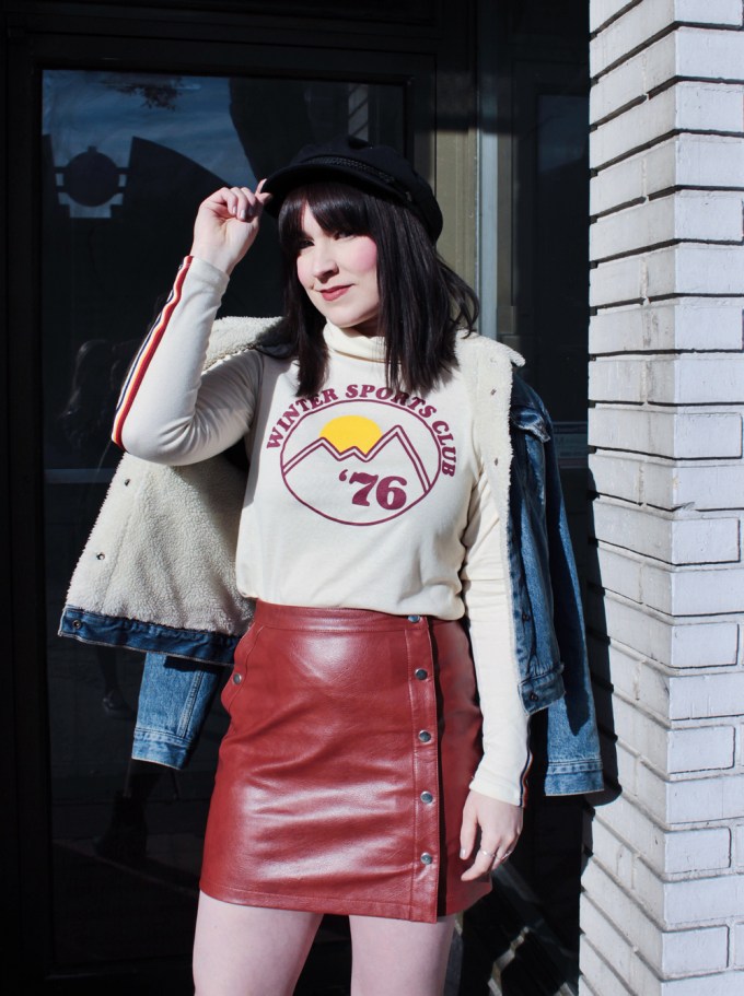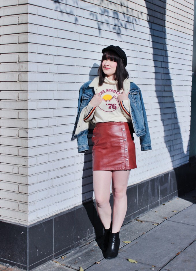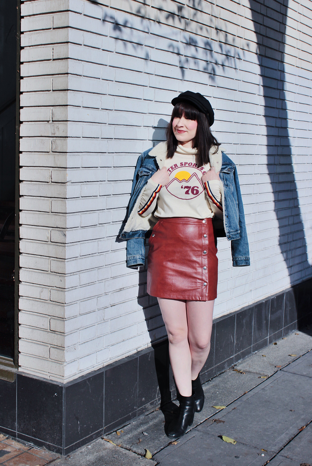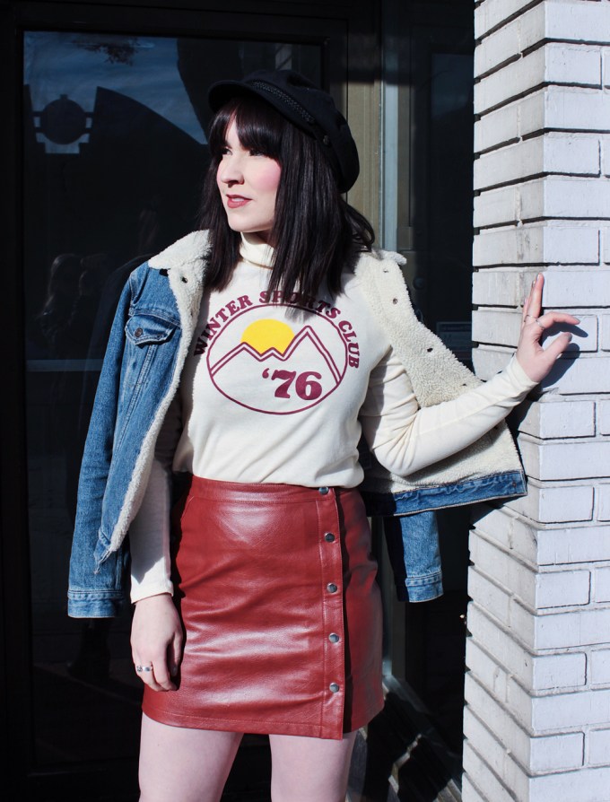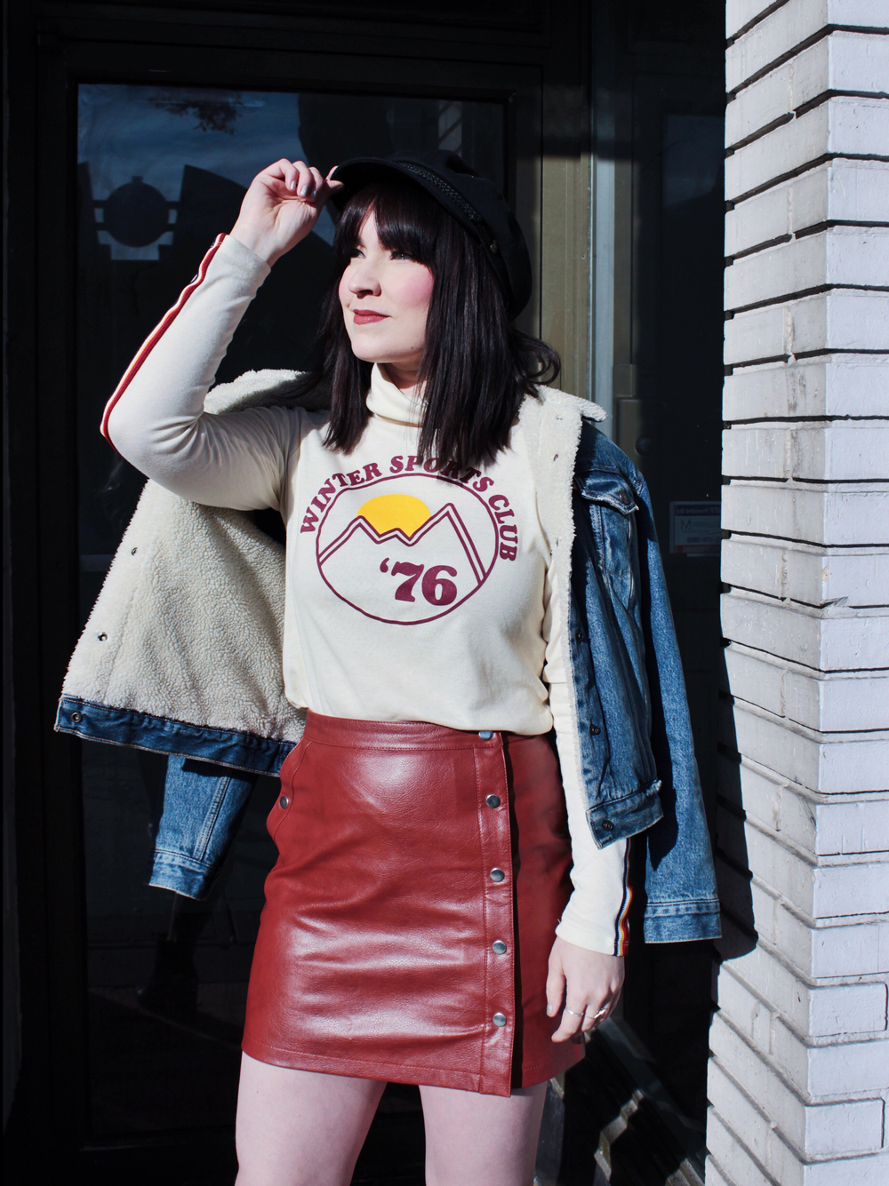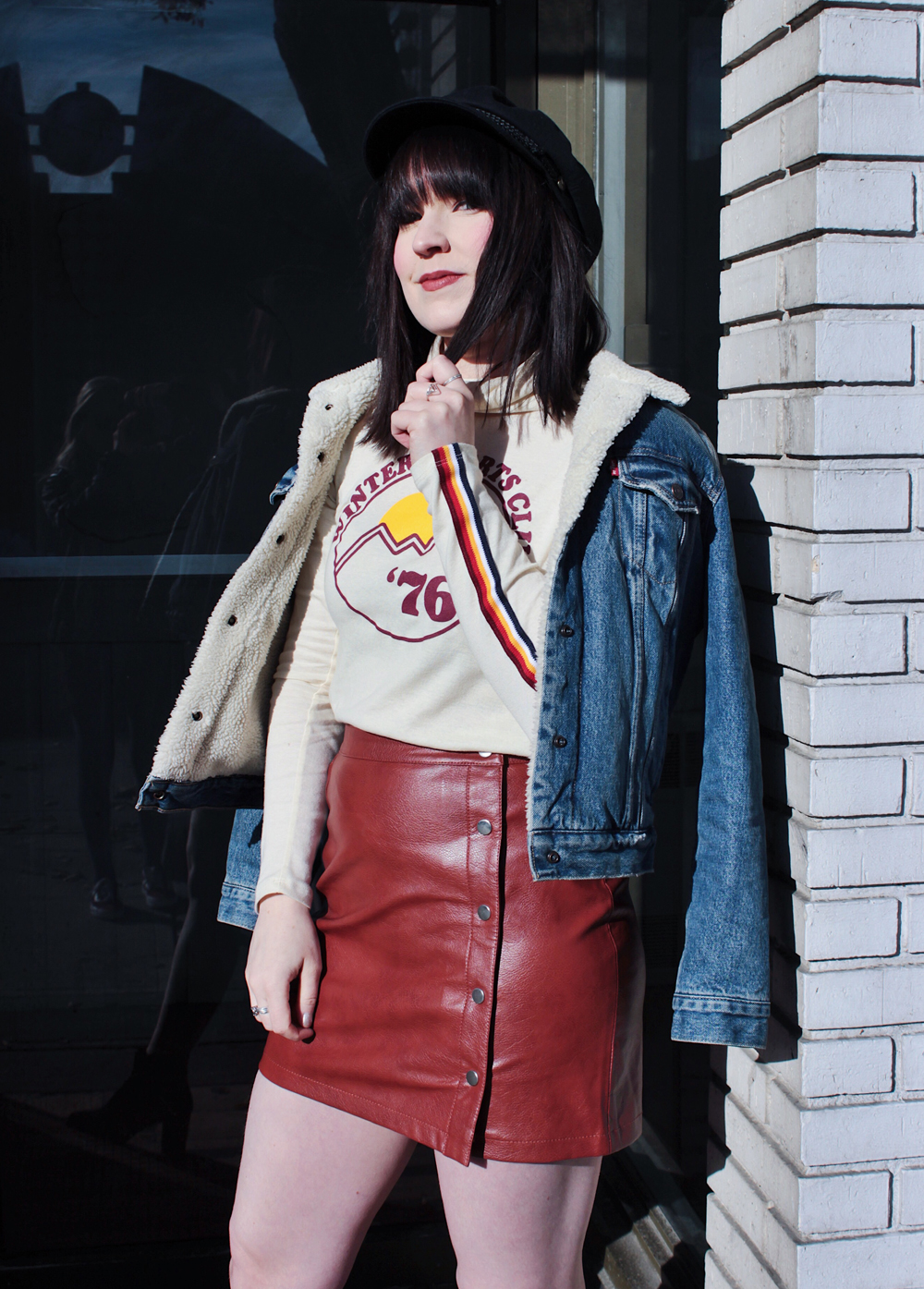 It’s no secret that I love all things 70’s inspired, so naturally I was drawn to this top by camp collection. I paired it with this faux leather skirt, and added a sherpa lined denim jacket to give it even more retro appeal! What’s your favourite fashion era?