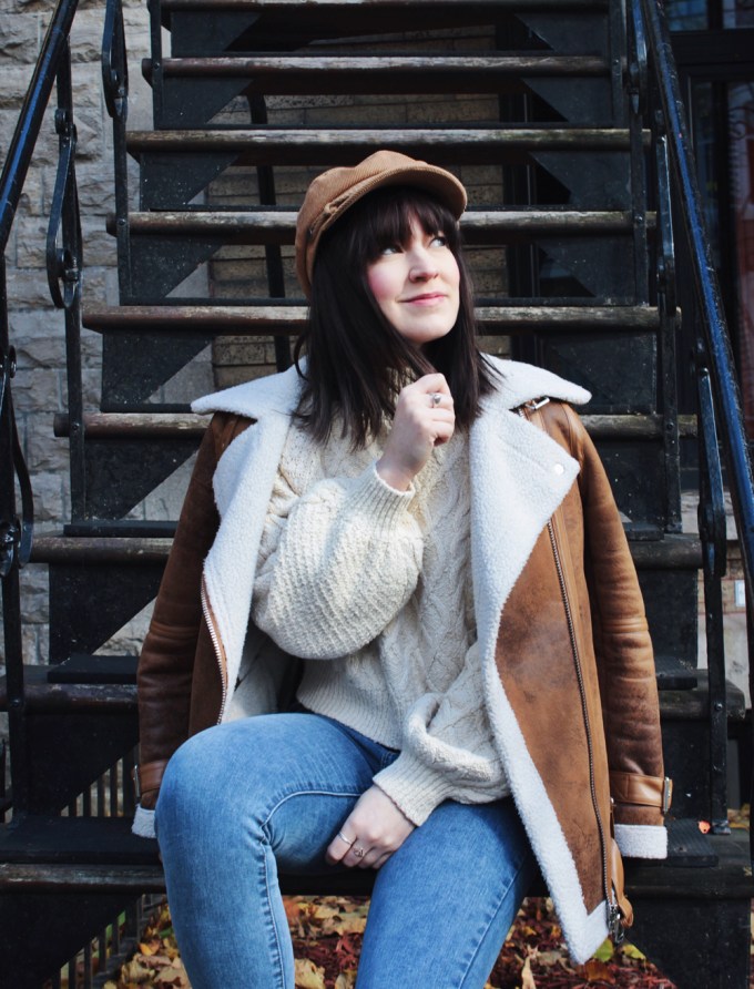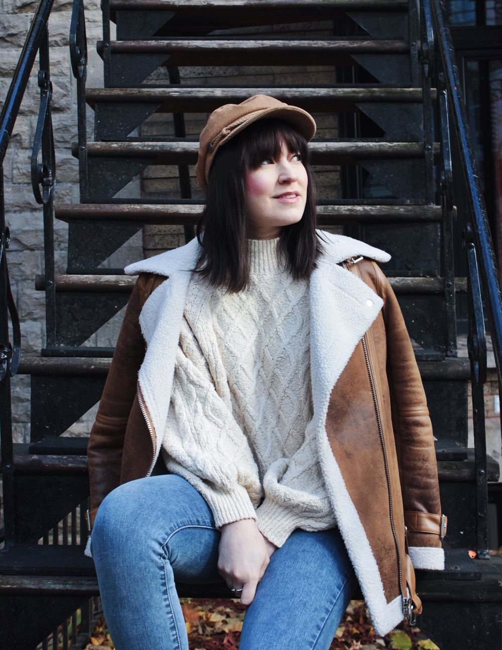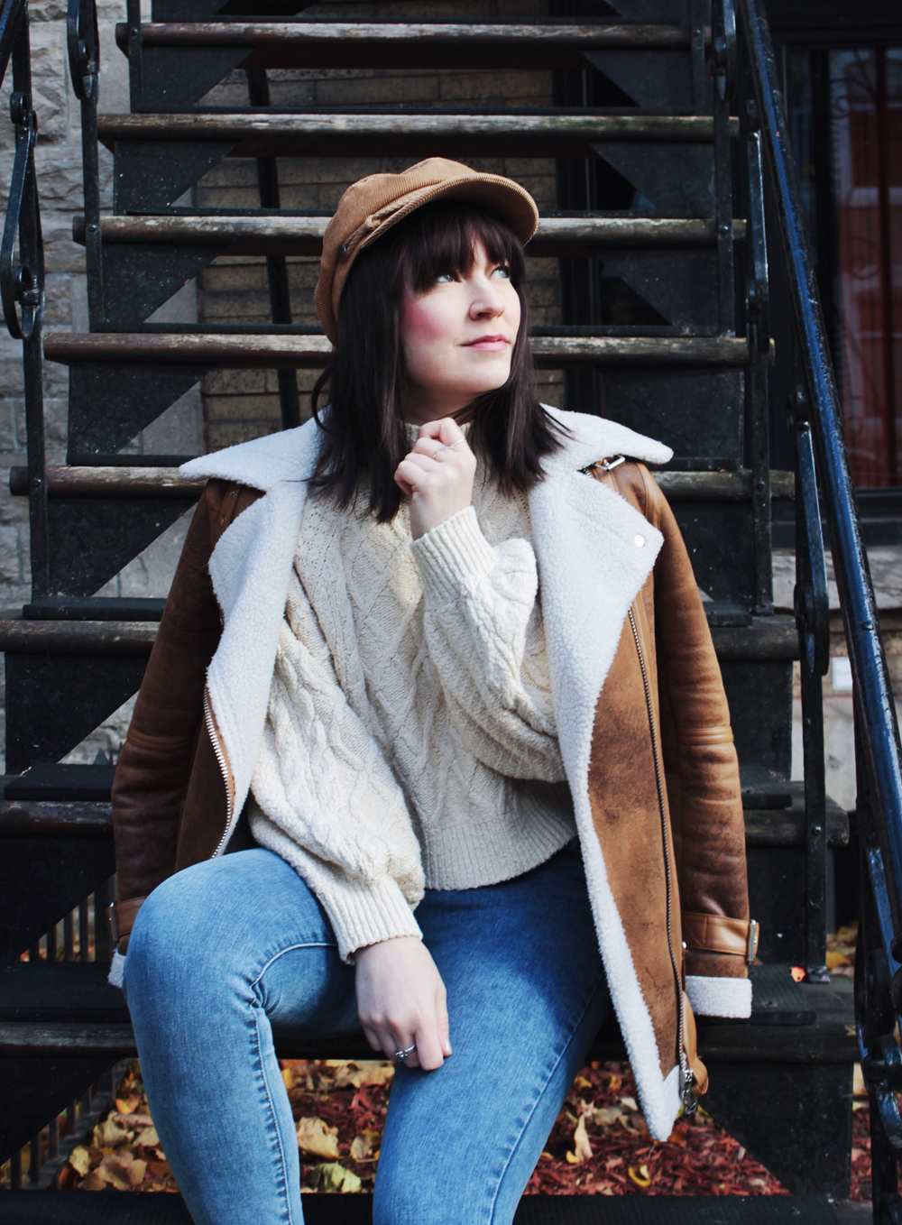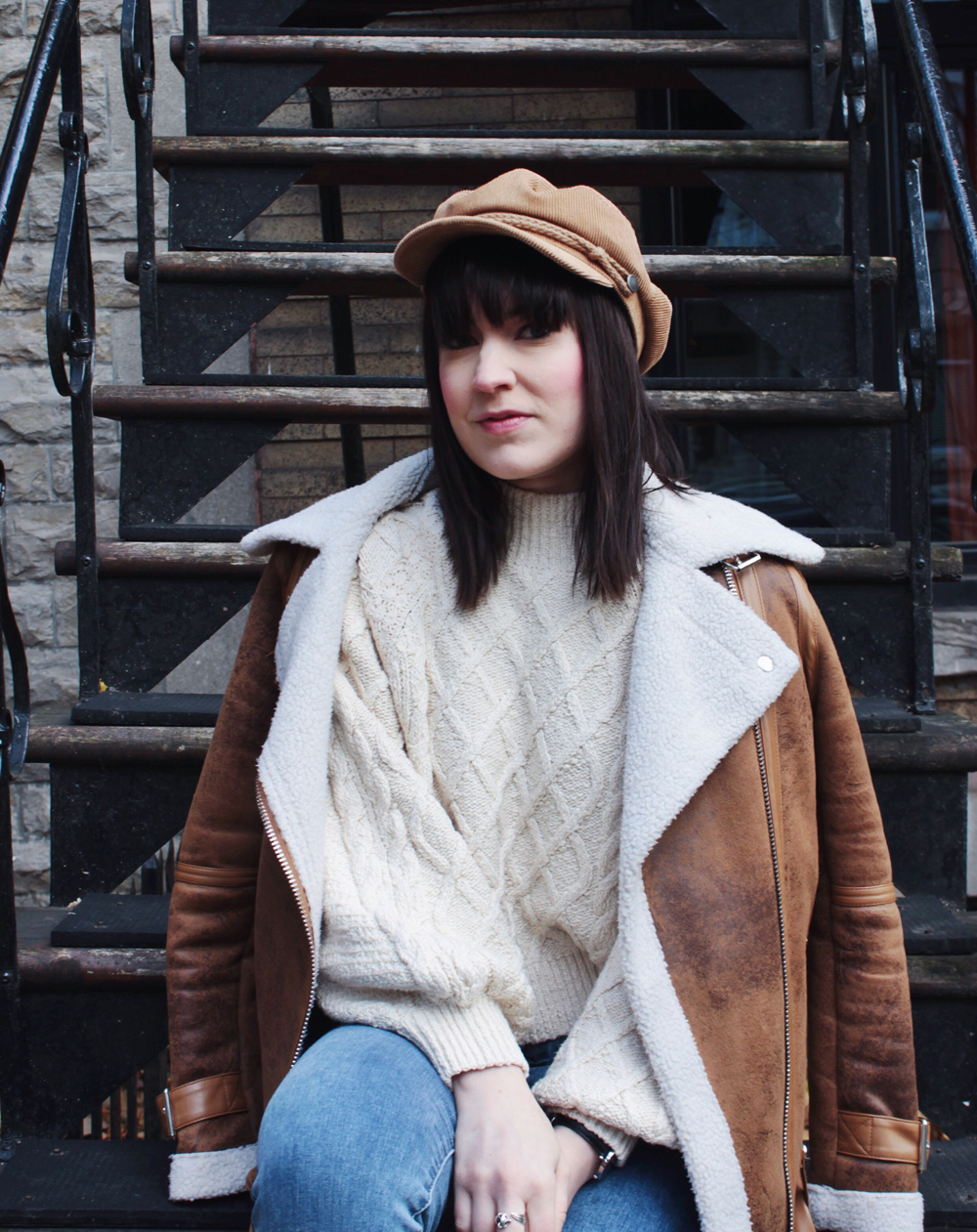 Outfit Details: Sweater: Free People / Jeans: Levis / Boots: C/O Vionic / Jacket: Urban Outfitters / Hat: Urban Outfitters