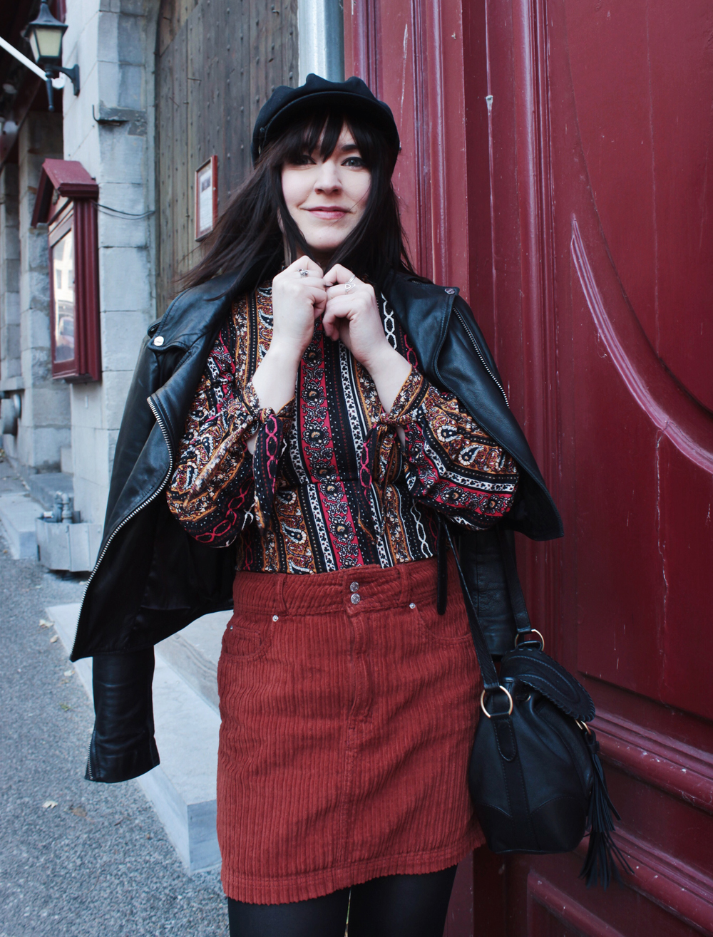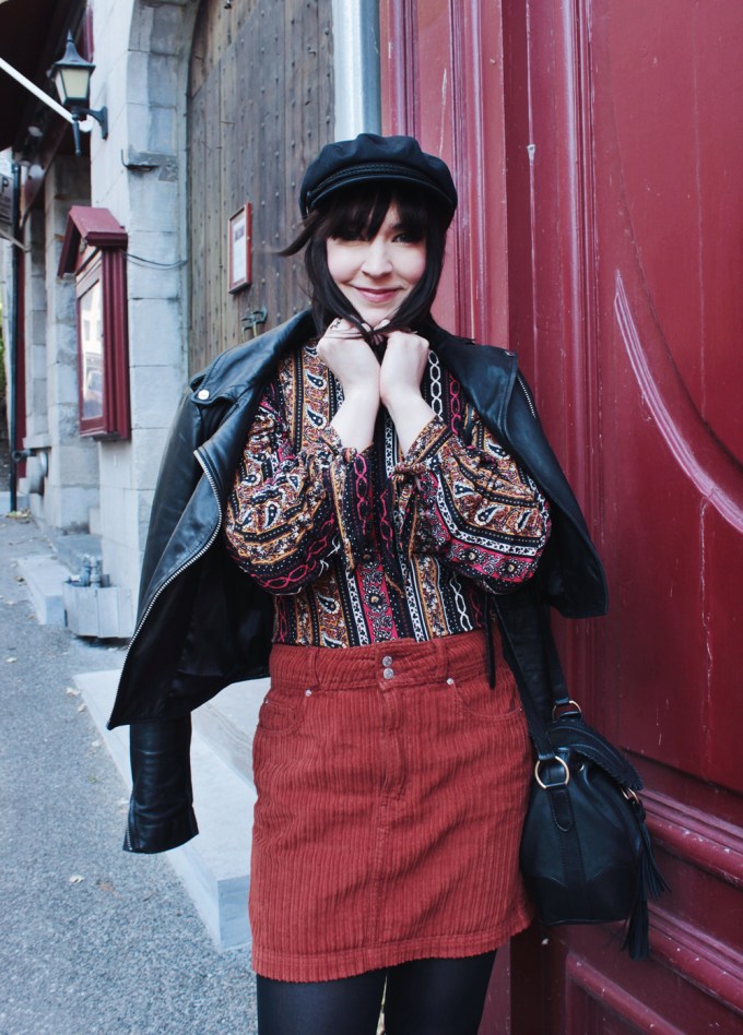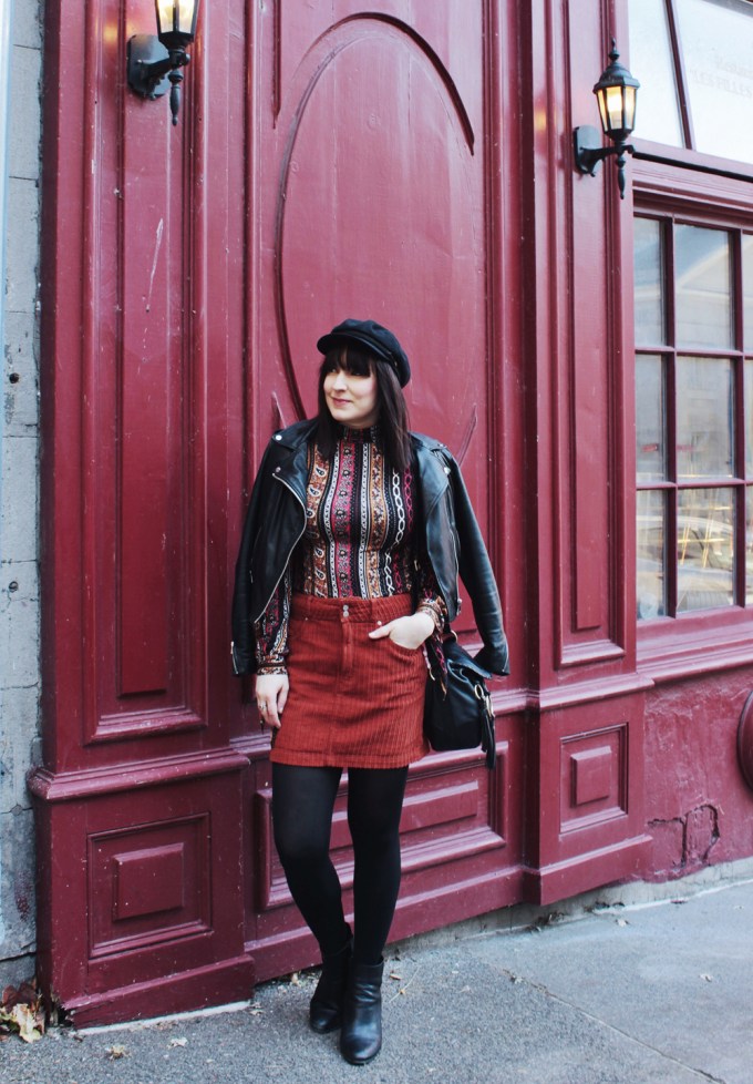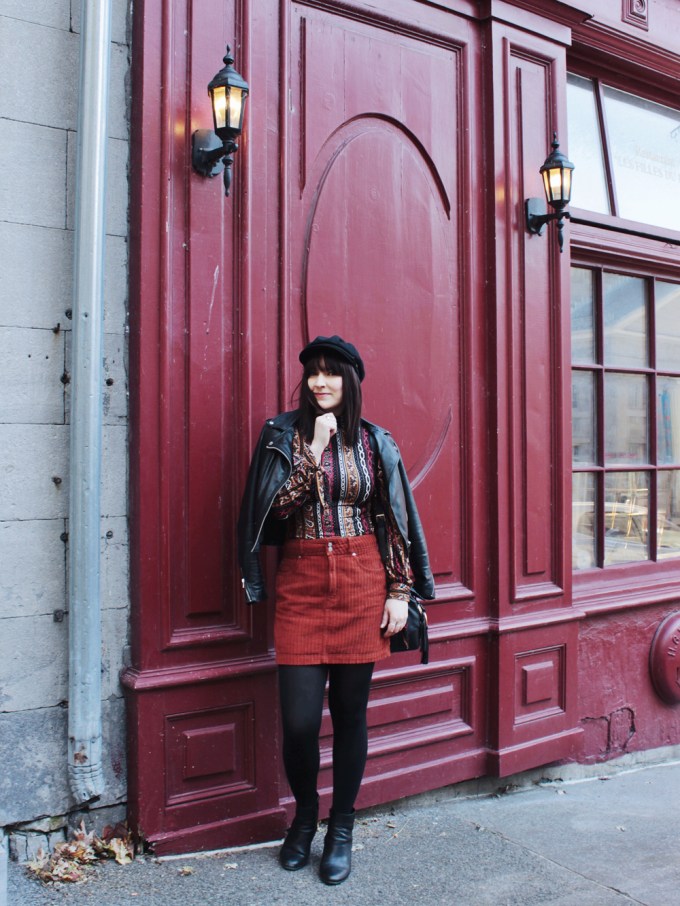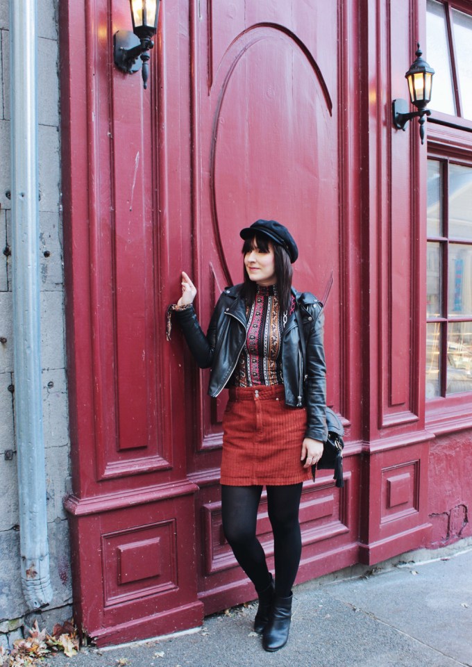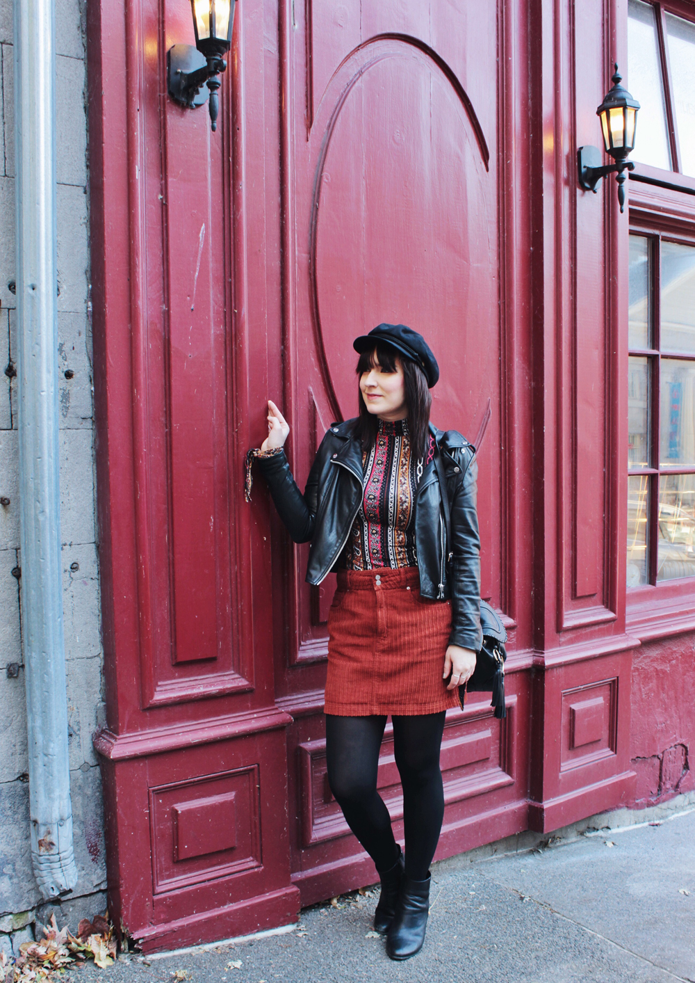 This is another look that I shot while I was in Montreal. We headed down to Old Montreal to do some exploring, and naturally I had to take photos while we were there! I’ve been wearing a lot of skirts lately, and this one from Urban Outfitters is one of my favourites! I love Corduroy and how it adds a bit of texture to an outfit. I also think that it pairs perfectly with this patterned top from Free People. The colours don’t match perfectly, but it’s close enough! As this is one of my favourite looks for fall, you’ll be seeing more variations of it on the blog in next month, so stayed tuned for that!