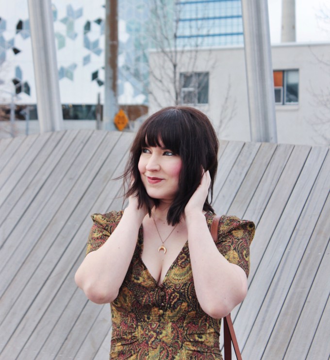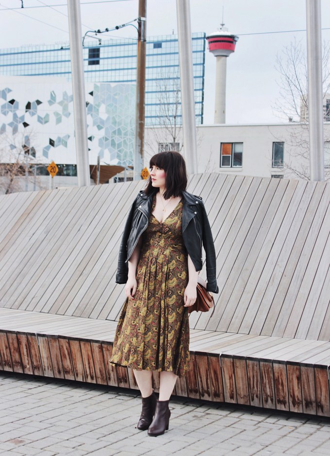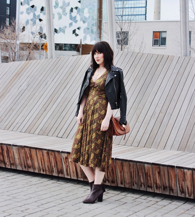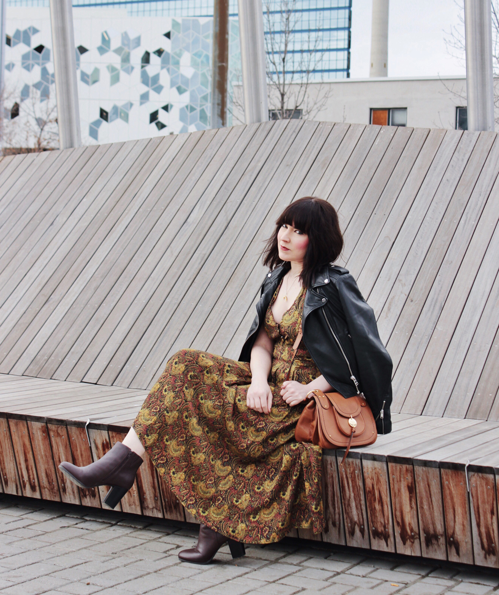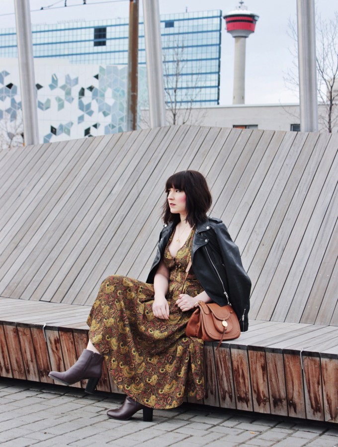 Nothing makes my hair feel better than a fresh cut and colour. Thanks goes out to Bailee at Hedkandi for making my hair look lovely every time! Speaking of lovely things, i’ve added a new pair of ankle boots to my collection! Vionic is one of my favourite footwear companies, and I can’t stop raving about how amazing they are! Their elevated support technology allows you to have comfort and style while wearing heels. When you wear heels most of the time like I do, that is very important! For this look, I chose one of my new favourite dresses from Free People. I love the pattern, and the fit is very flattering! To finish off the look, I added a leather moto jacket, and my favourite new See By Chloe bag.