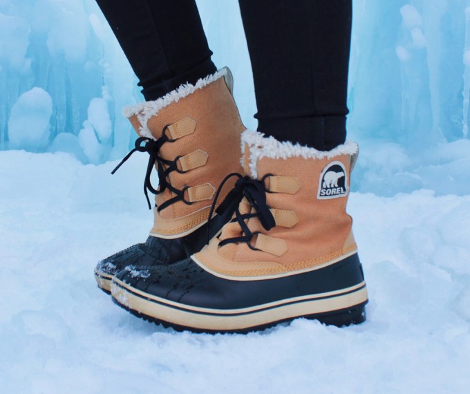 Outfit Details: Coat: Wilfred / Boots: Sorel / Hat: Volcom / Jeans: Levis