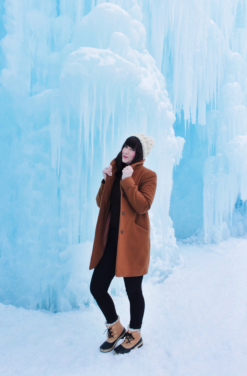 I recently had the pleasure of visiting the Ice Castle in Edmonton. It’s really beautiful, and if you have the chance I highly recommend checking it out! This year I managed to see it before the temperature dropped to an unbearable level. That was extremely lucky, because when it’s below 25 degrees, it’s really difficult to look anything but freezing cold in photos! I chose one of my favourite cold weather outfits for this adventure. I managed to stay reasonably warm, with the exception of my hands. Afterwards, my sister and I stopped by Duchess bakery to warm up with a chai latte and some macaroons. It’s always fun to visit Edmonton, I grew up there, and it’s nice to see my sister and old friends whenever i’m in town!
