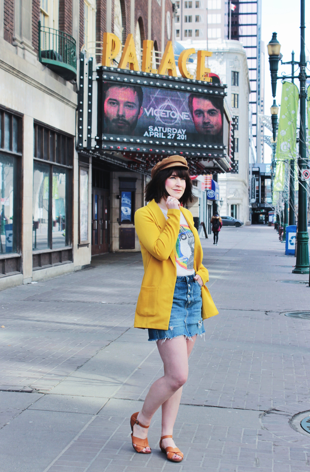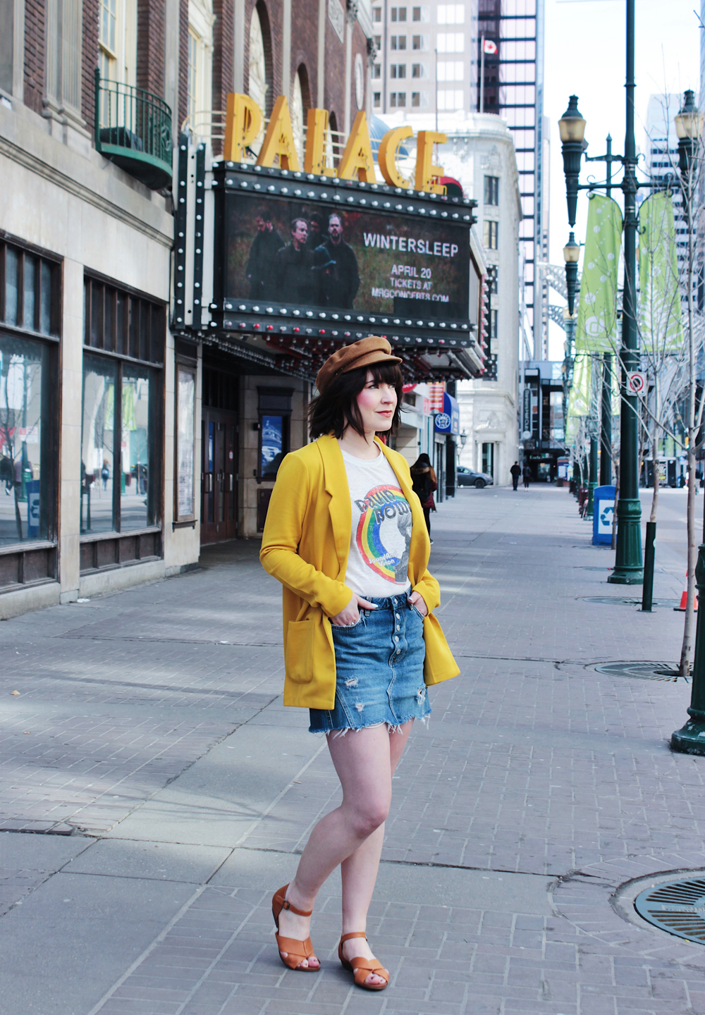 Now that it’s April, i’ve been attempting to freshen up wardrobe by adding a little bit more colour. This yellow blazer from Simons definitely accomplishes that! I’ve never really worn blazers, so this is a bit of a change for me. I love the colour, and the fit is perfect, so I think it makes a great addition to my wardrobe. I’ve also recently added a few new accessories, including this Brixton cap and these Bueno sandals. It’s great when you can find items that fit seamless into your wardrobe, and you don’t need to buy more to make an outfit work. Nothing is worse than buying something, taking it home, and realizing you don’t have anything to pair it with!