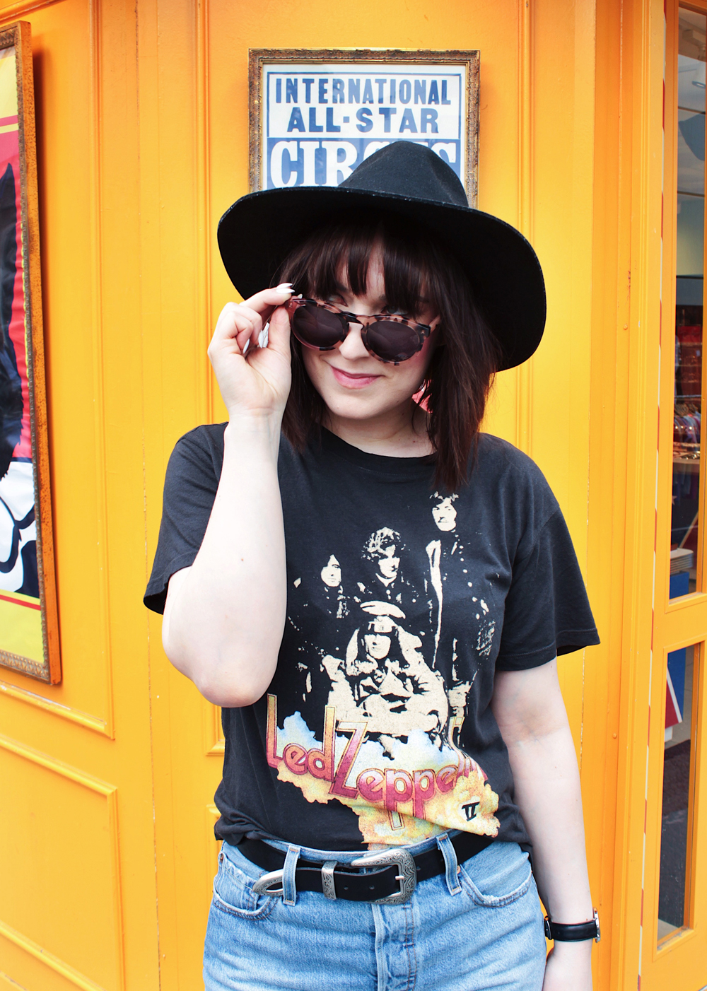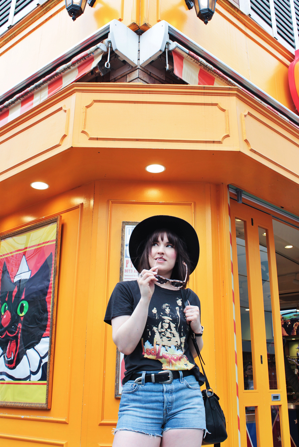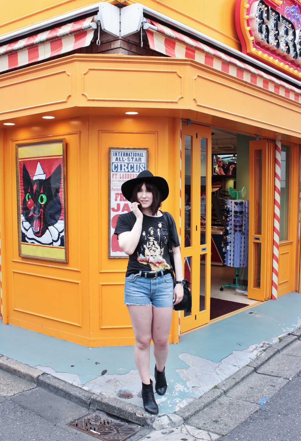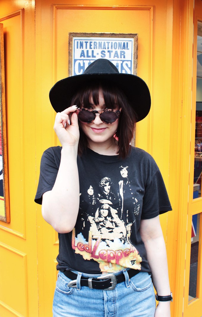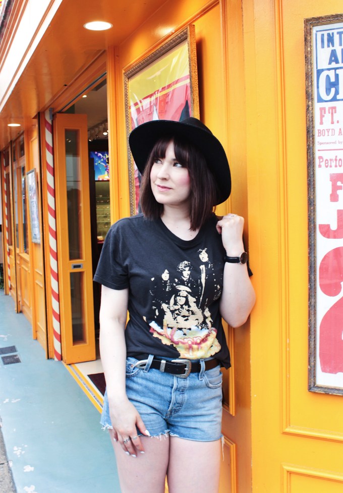 Outfit Details: Top: Free People / Shorts: Levis / Boots: C/O Vionic / Hat: Lack of Color / Sunglasses: C/O Bon look